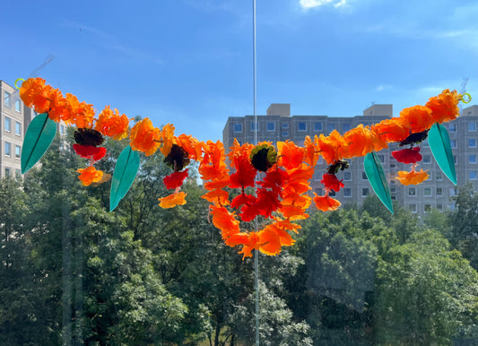 Plastová květinová girlanda Merigold s jedním provázkem (oranžová)