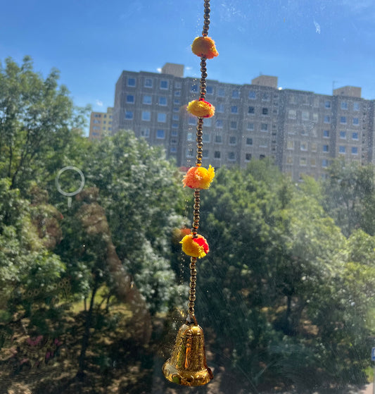 Pom Pom String with Golden Beads Toran (100cm) (1pc)