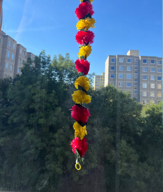 Yellow Red Mix Marigold Plastic Flower Garland (130cm) (1pc)