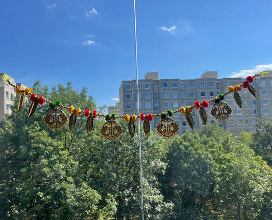 Green Threaded, Beads,Mirror Traditional Wall String (95cm) (1pc)