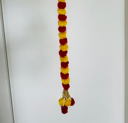 Yellow Red Marigold Mogra Plastic Flower Garland With Bell (130cm) (1pc)