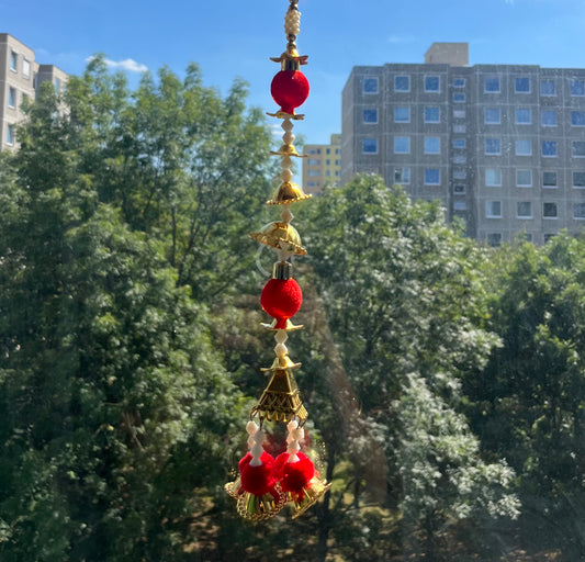 Maroon Golden Pompom with Beads Traditional Wall String (110cm) (1 pc)
