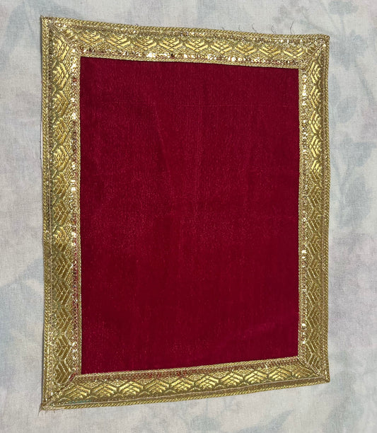Red Velvet Swastik Golden Zari Border Aasan (48x20cm)
