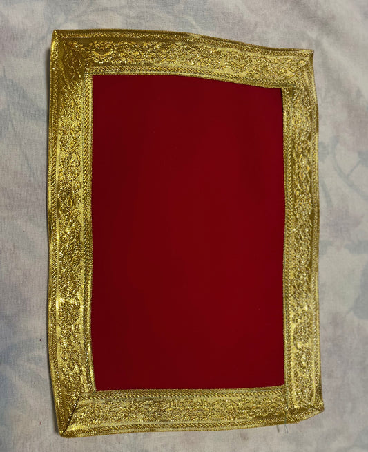 Red Golden Zari Embroidery Aasan (32x16cm)