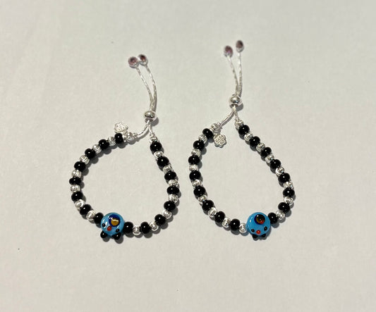 Pure Silver Nazariya Black Beaded Bracelet for Baby (Adjustable) Kitty (1pair)