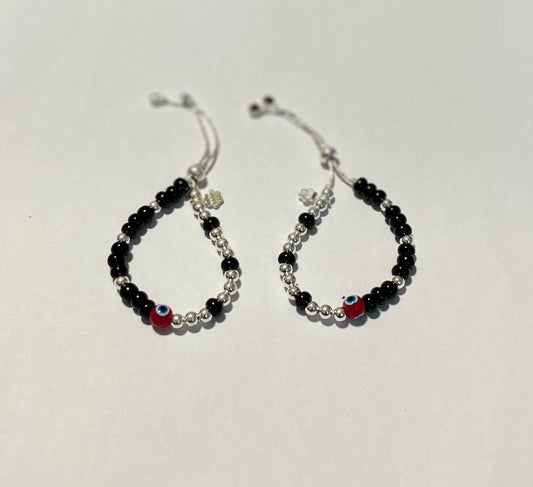 Pure Silver Nazariya Evil Eye Bracelet for Baby (Adjustable) Red Blue (1pair)