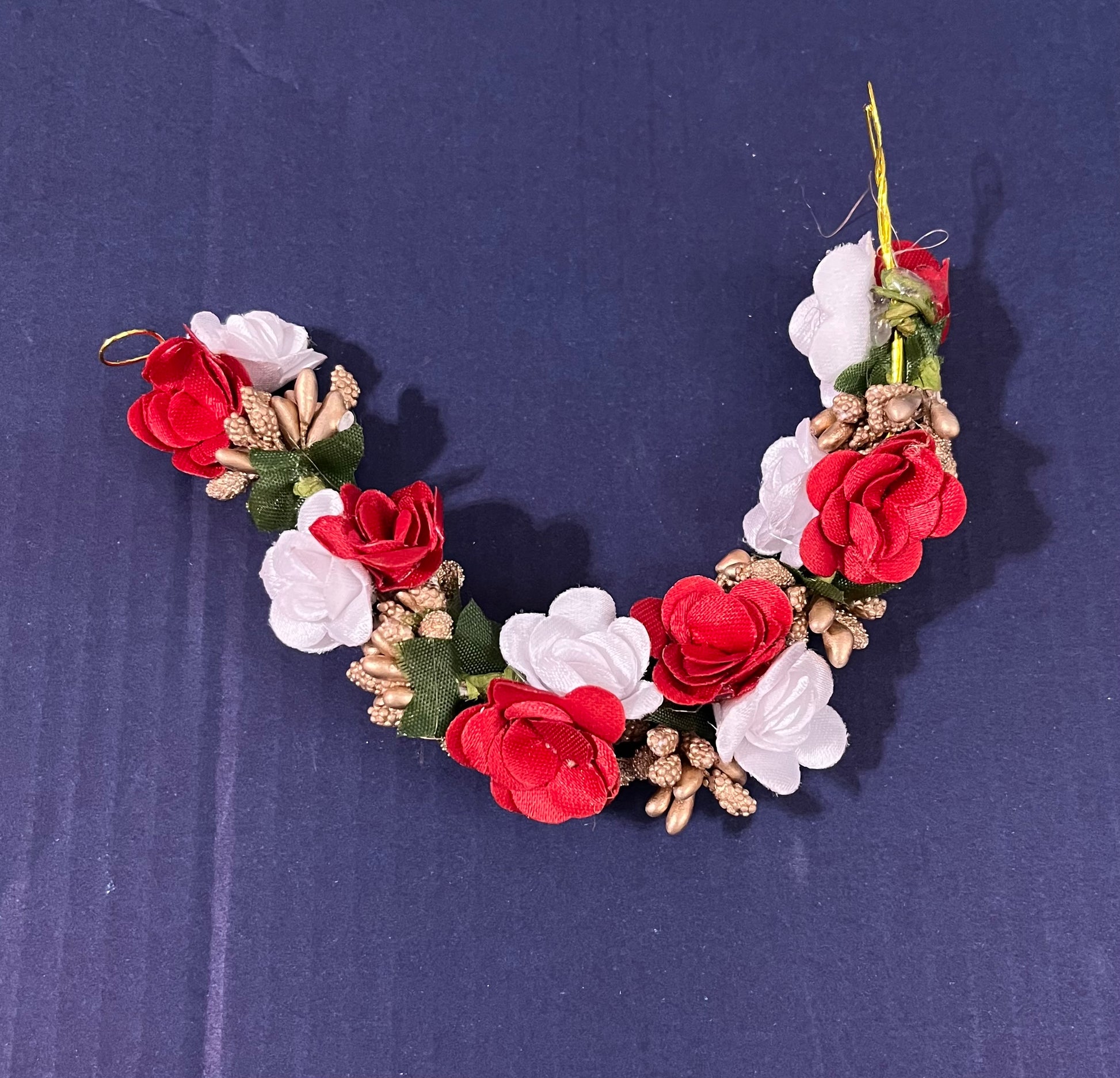 Artificial Flower Gajra Bun Juda Maker Flower Gajra Hair Accessories For Women and Girls Red White