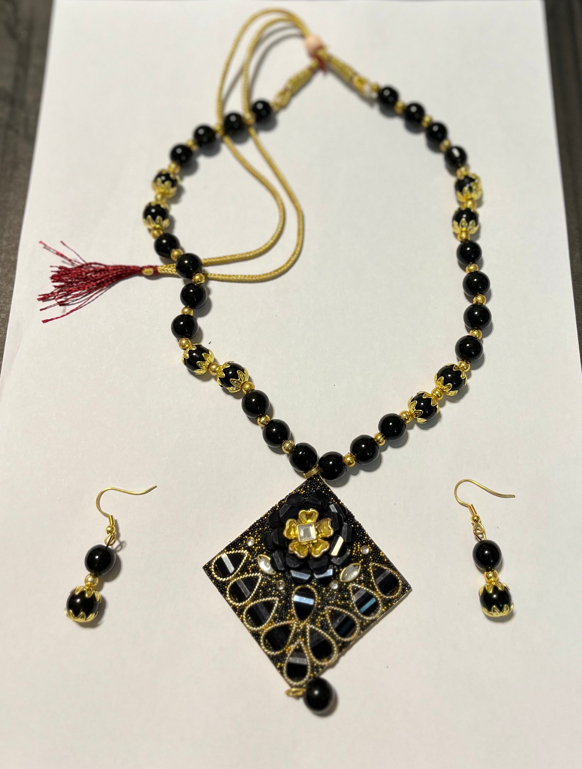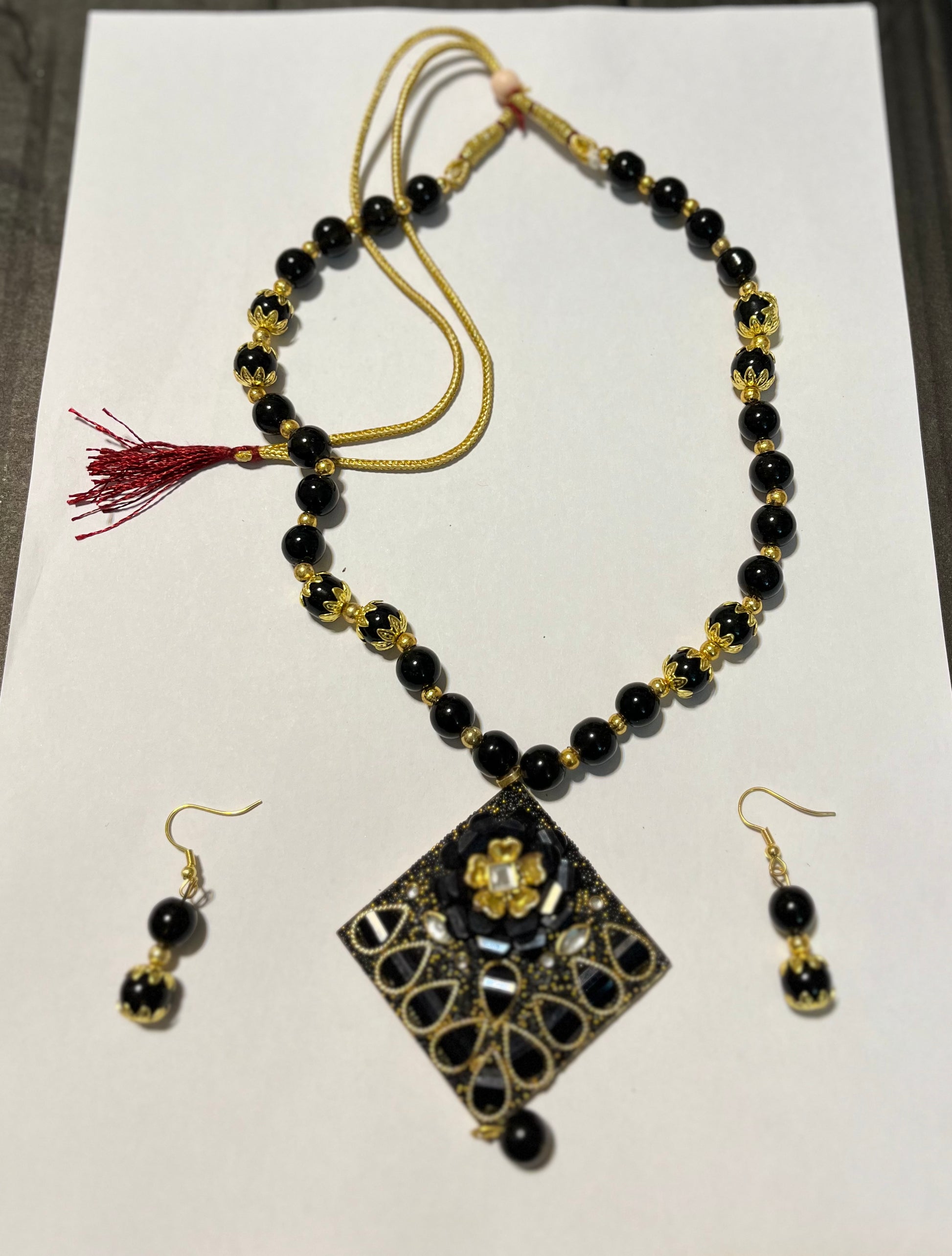 Color: Black beaded with Big Pendant