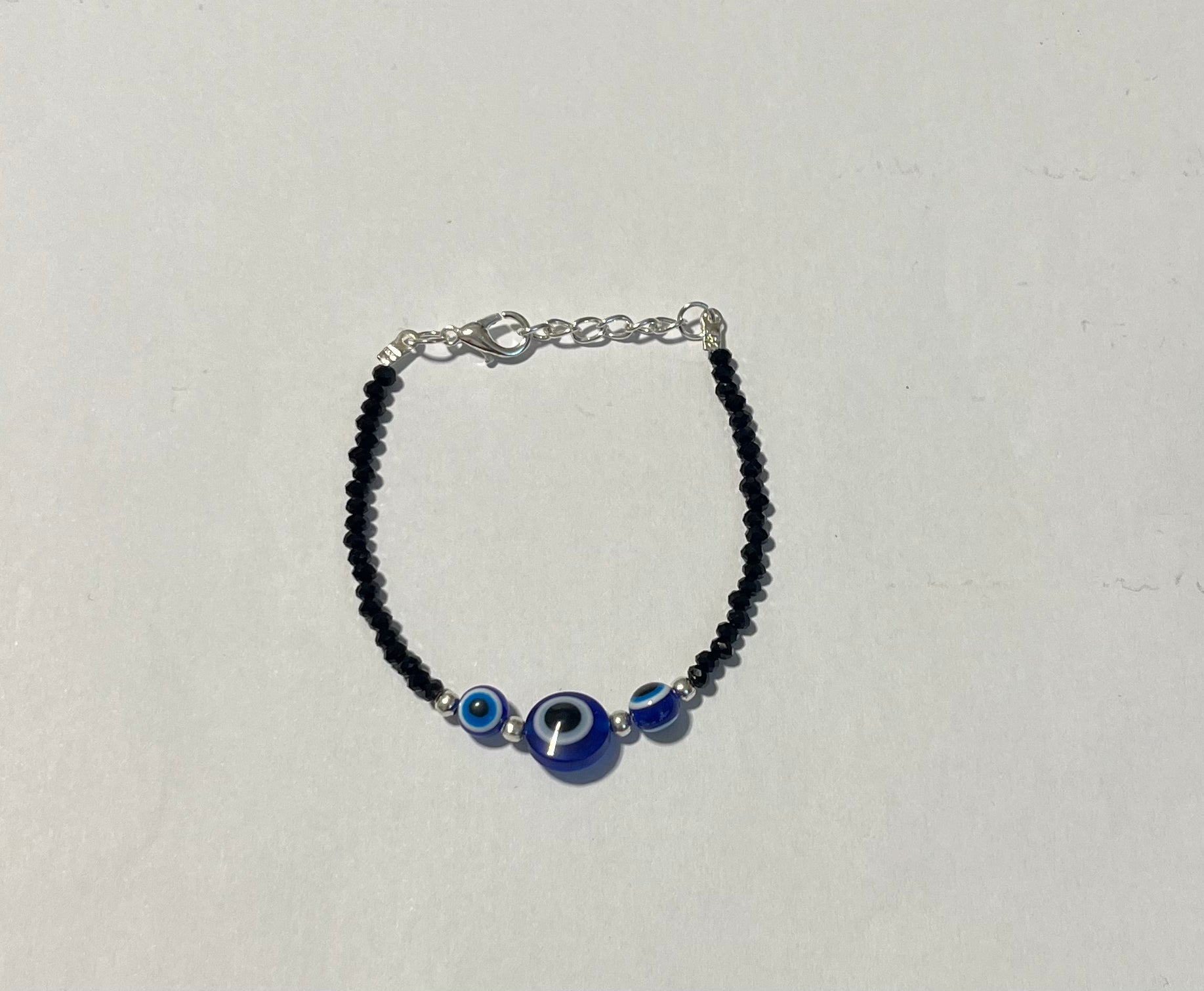 Black Beaded Nazariya Evil Eye Bracelet (Chain Adjustable) (1pc)