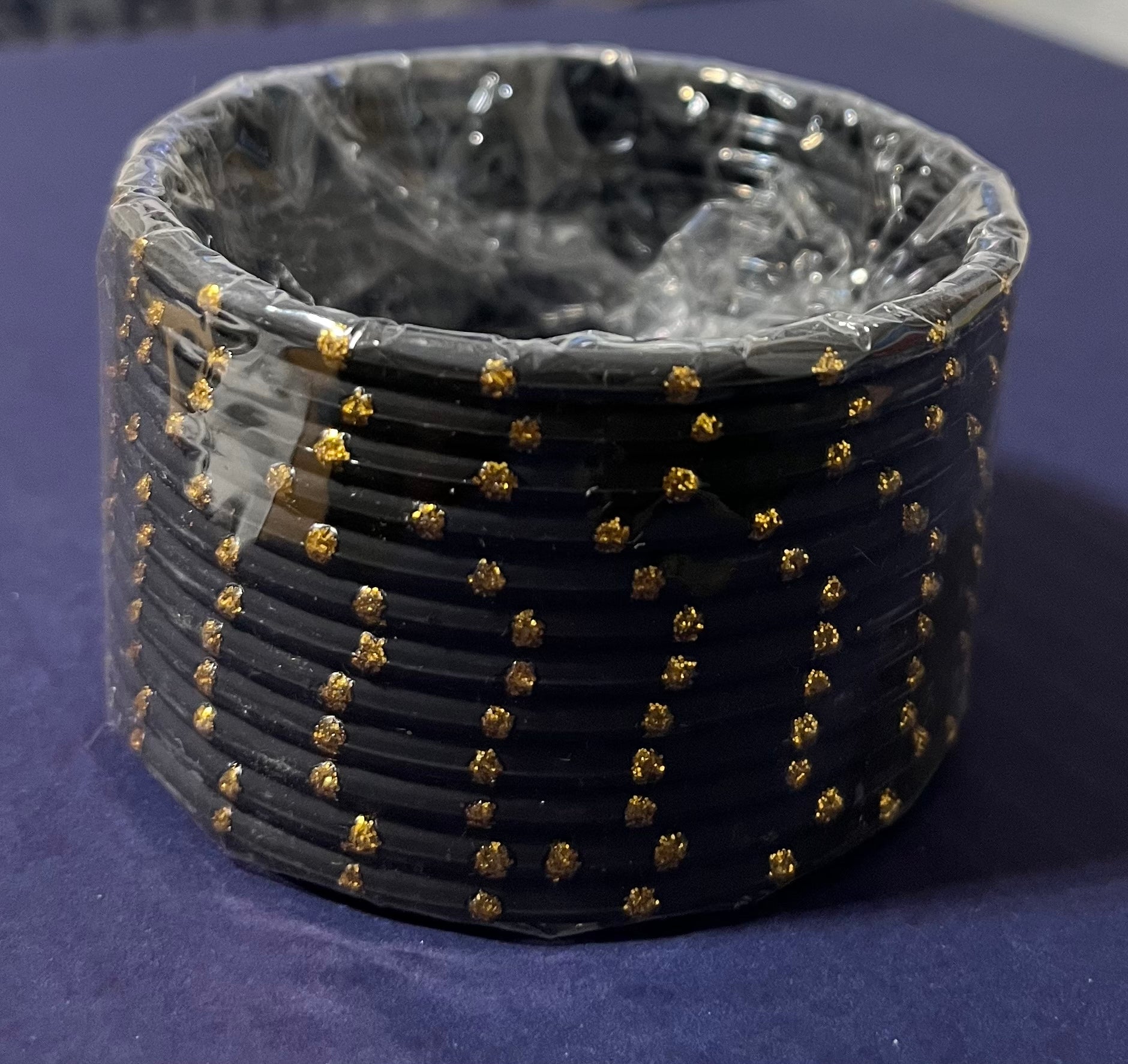 Beautiful shining Black plastic bangles with golden moti beaded to give a beautiful look to your hand.
