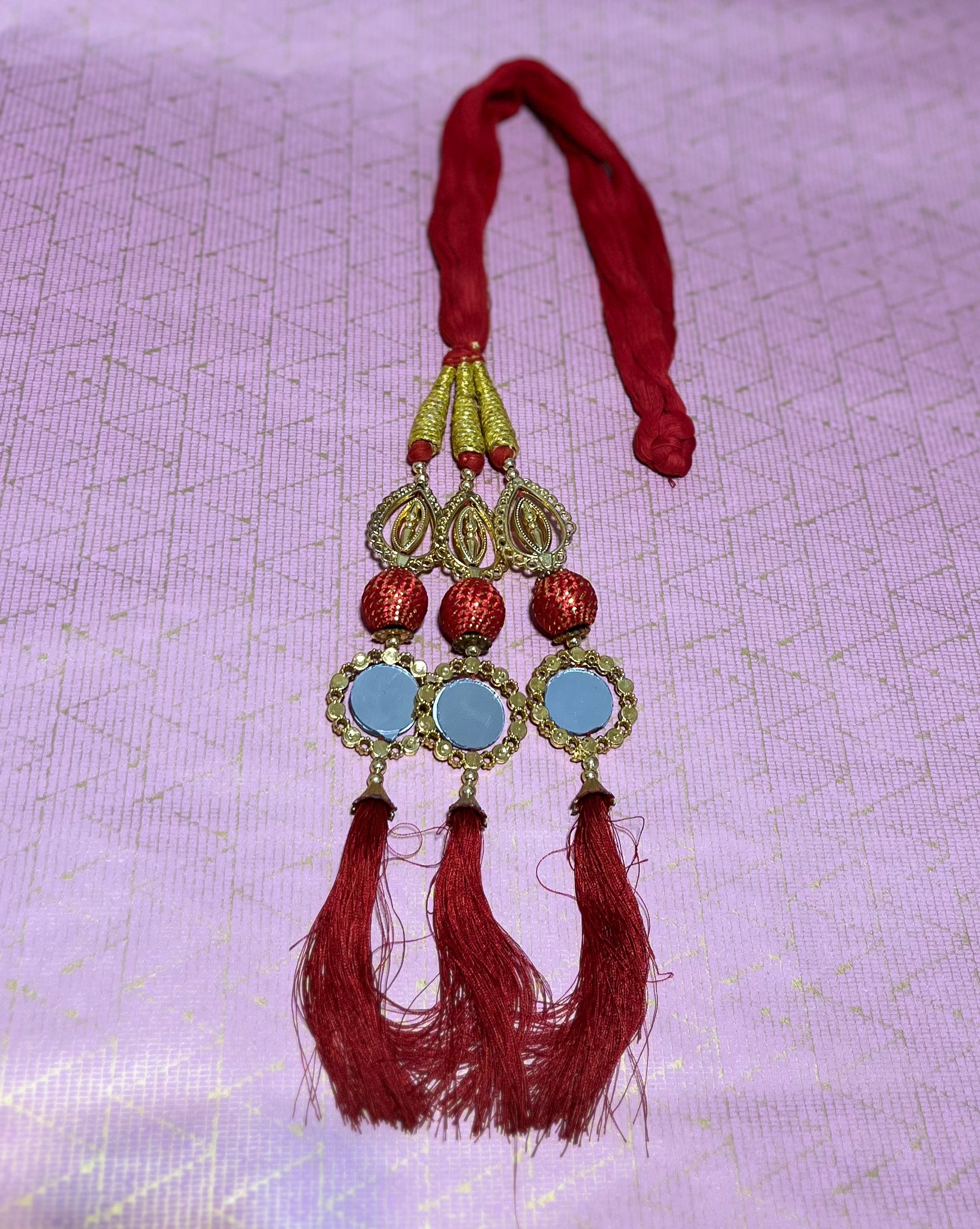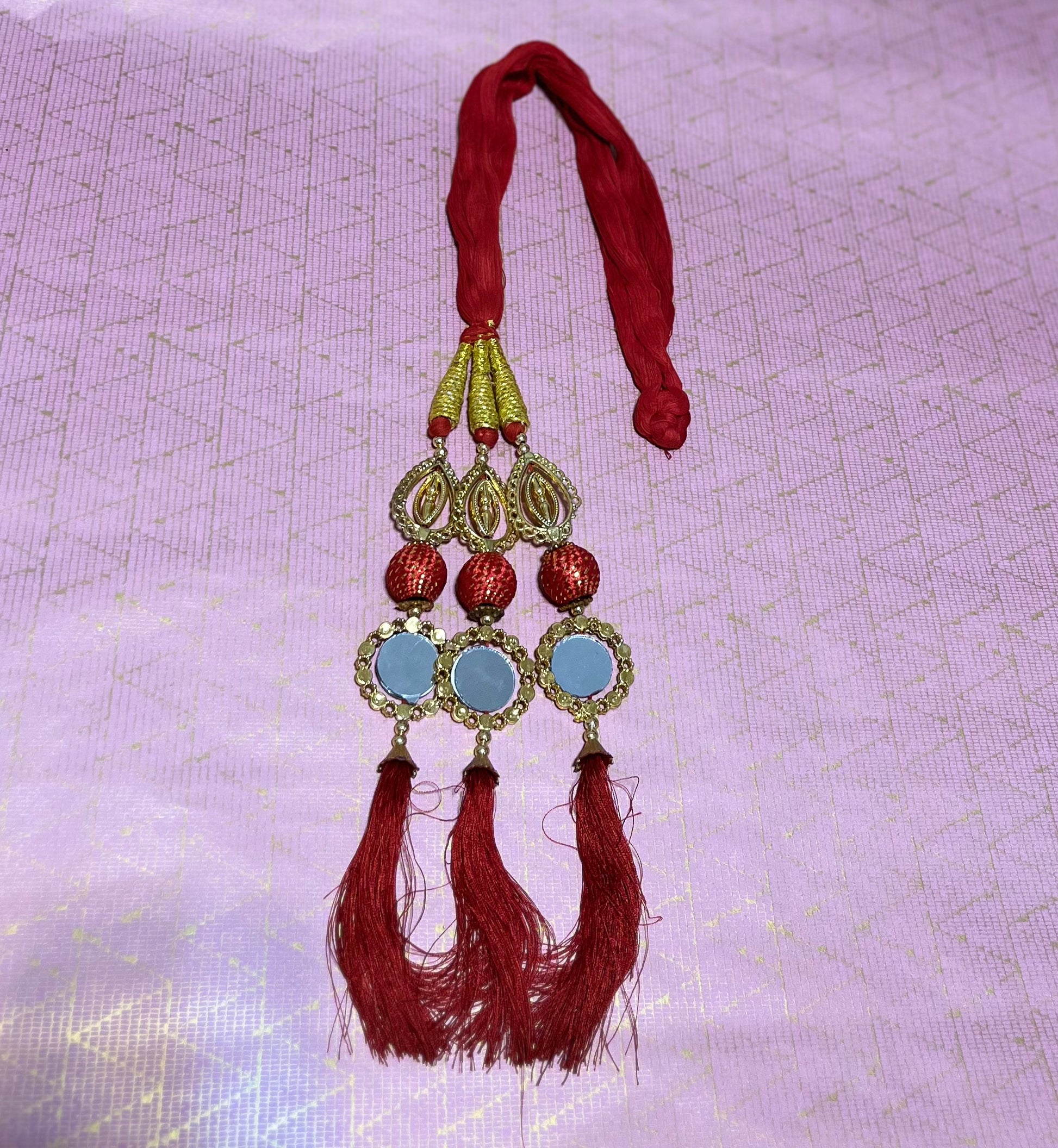 Punjabi Parandi Paranda Choti Braid/Tassles Hair, Hair Extensions for Girls and Women Pack of 1, Color-Red golden beaded