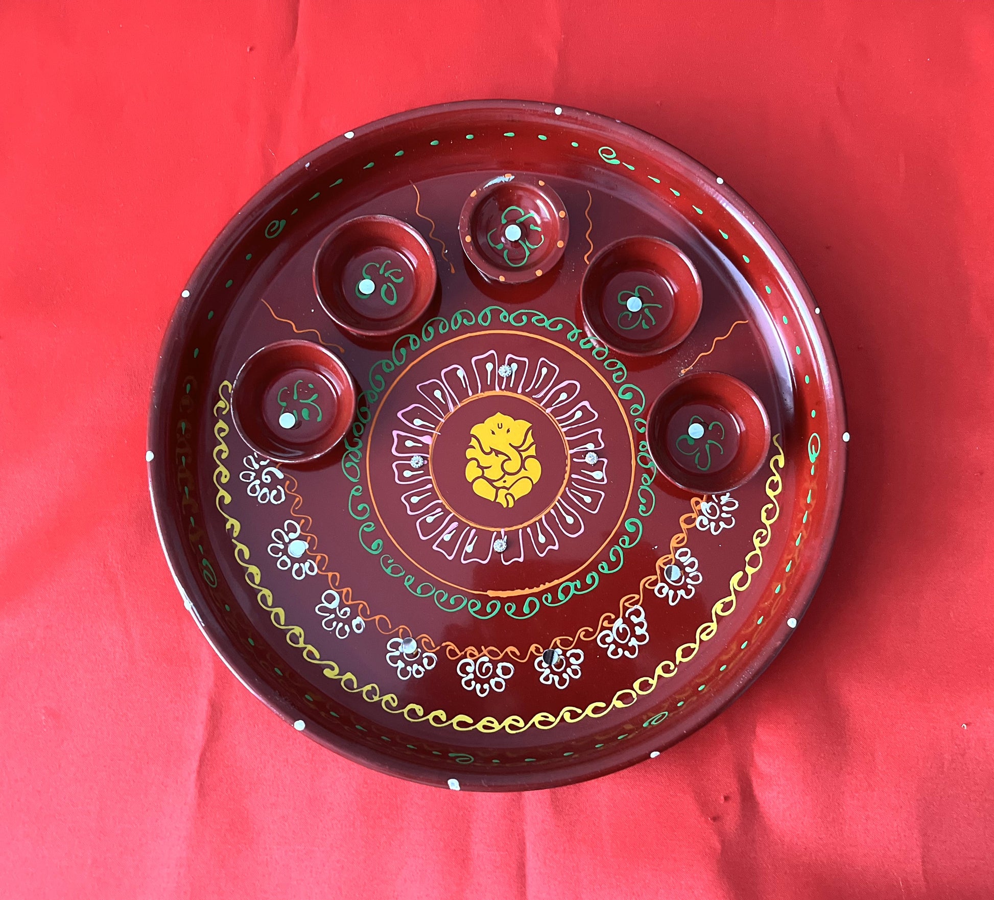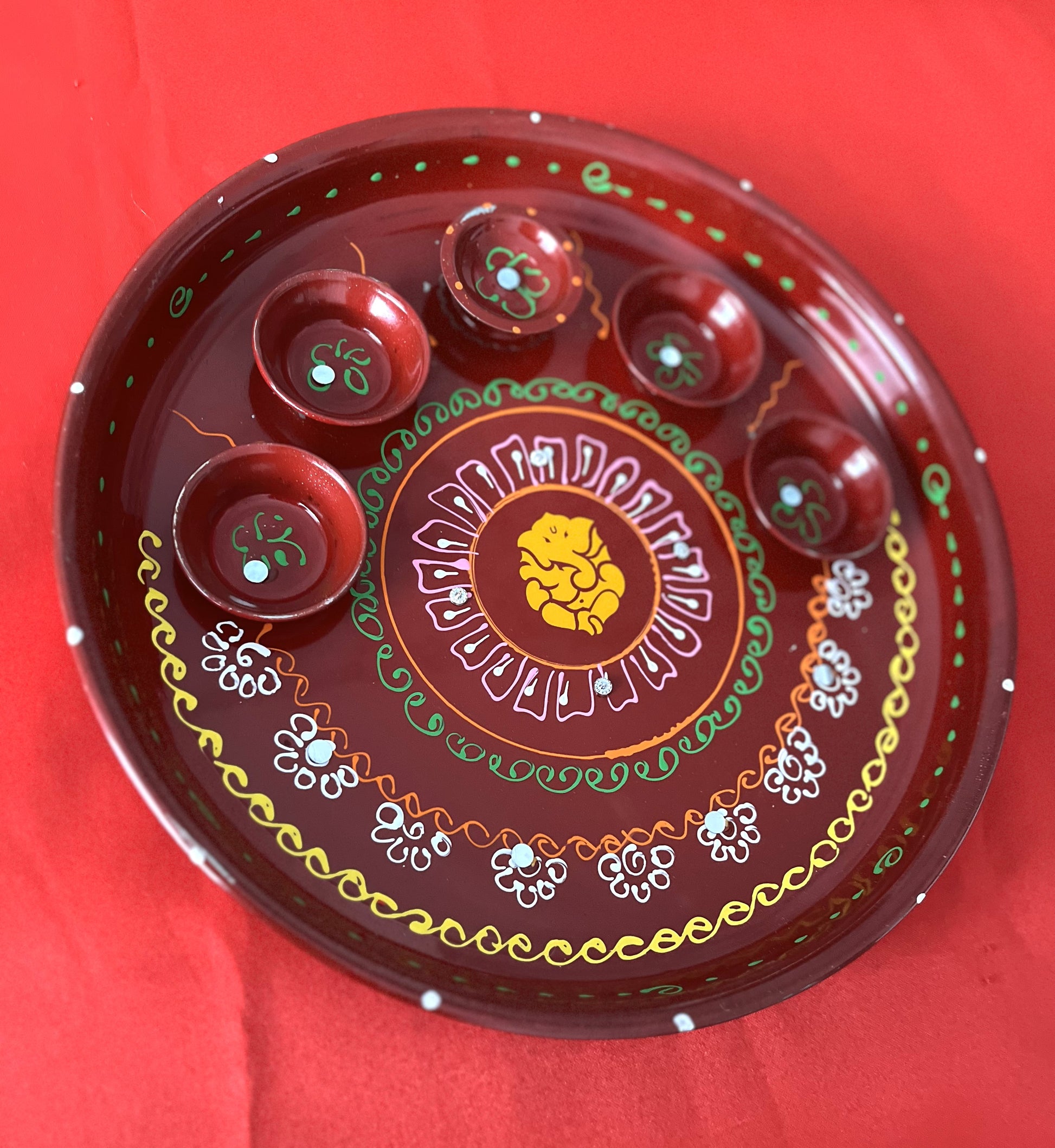 Designer puja thali with ganesha design.