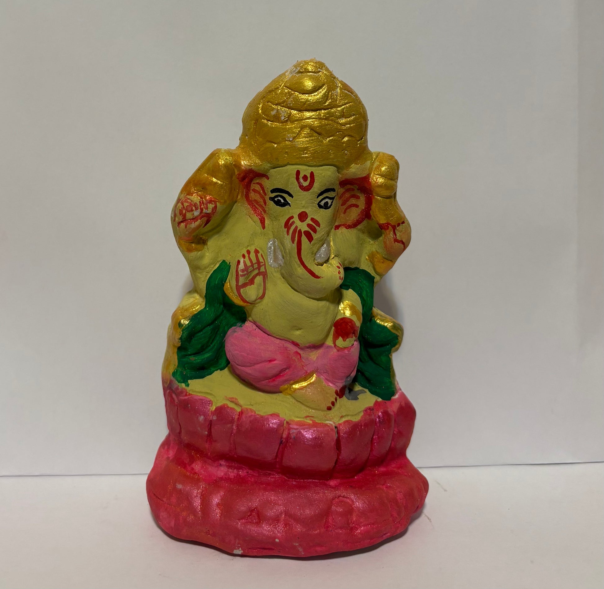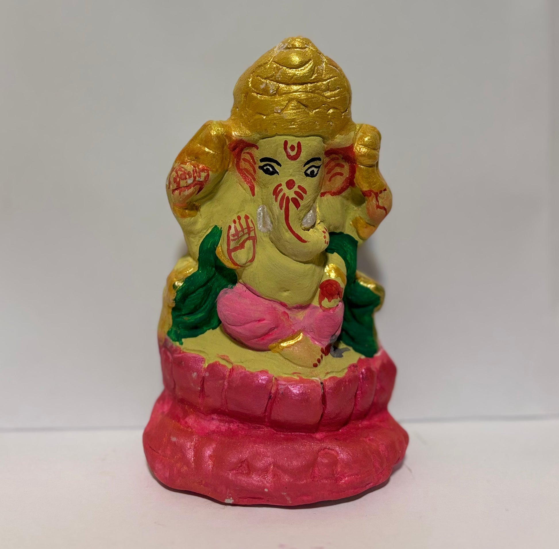 Eco-Friendly Mitti Ganesha Idol Lotus Hand Made (5 inch)