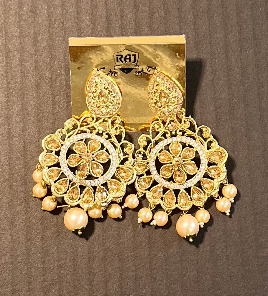 Beautiful Big white moti and golden kundan jhumka.