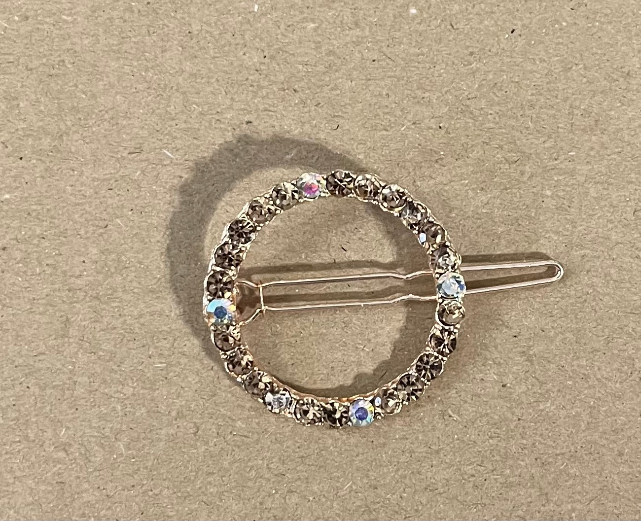 Juda Pin with buckle to attach. It has rose gold stone in round shape