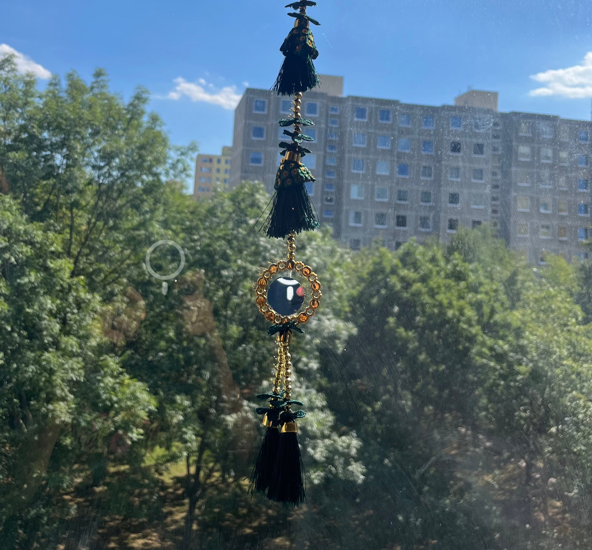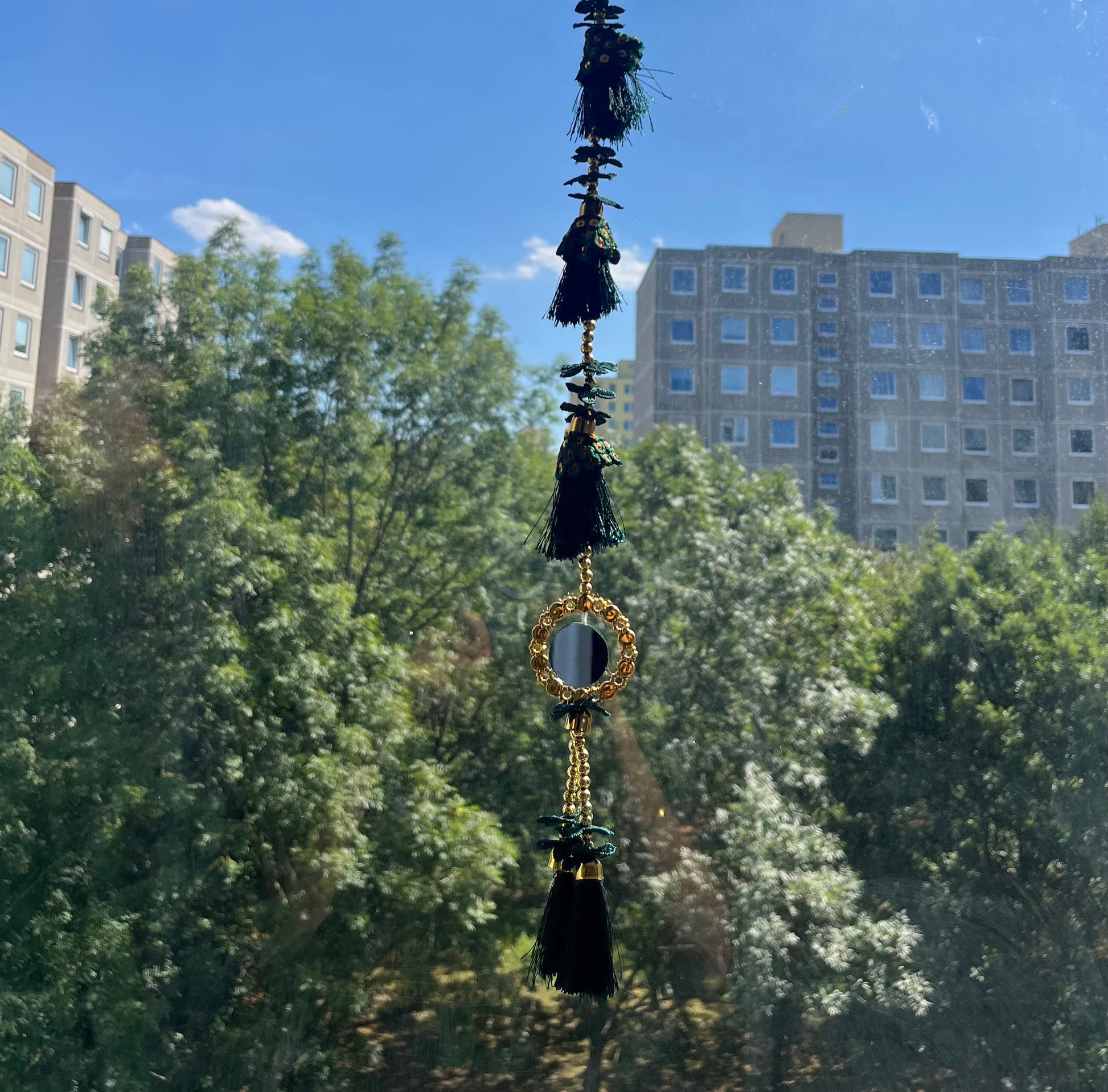 Green Threaded, Beads,Mirror Traditional Wall String (95cm) (1pc)