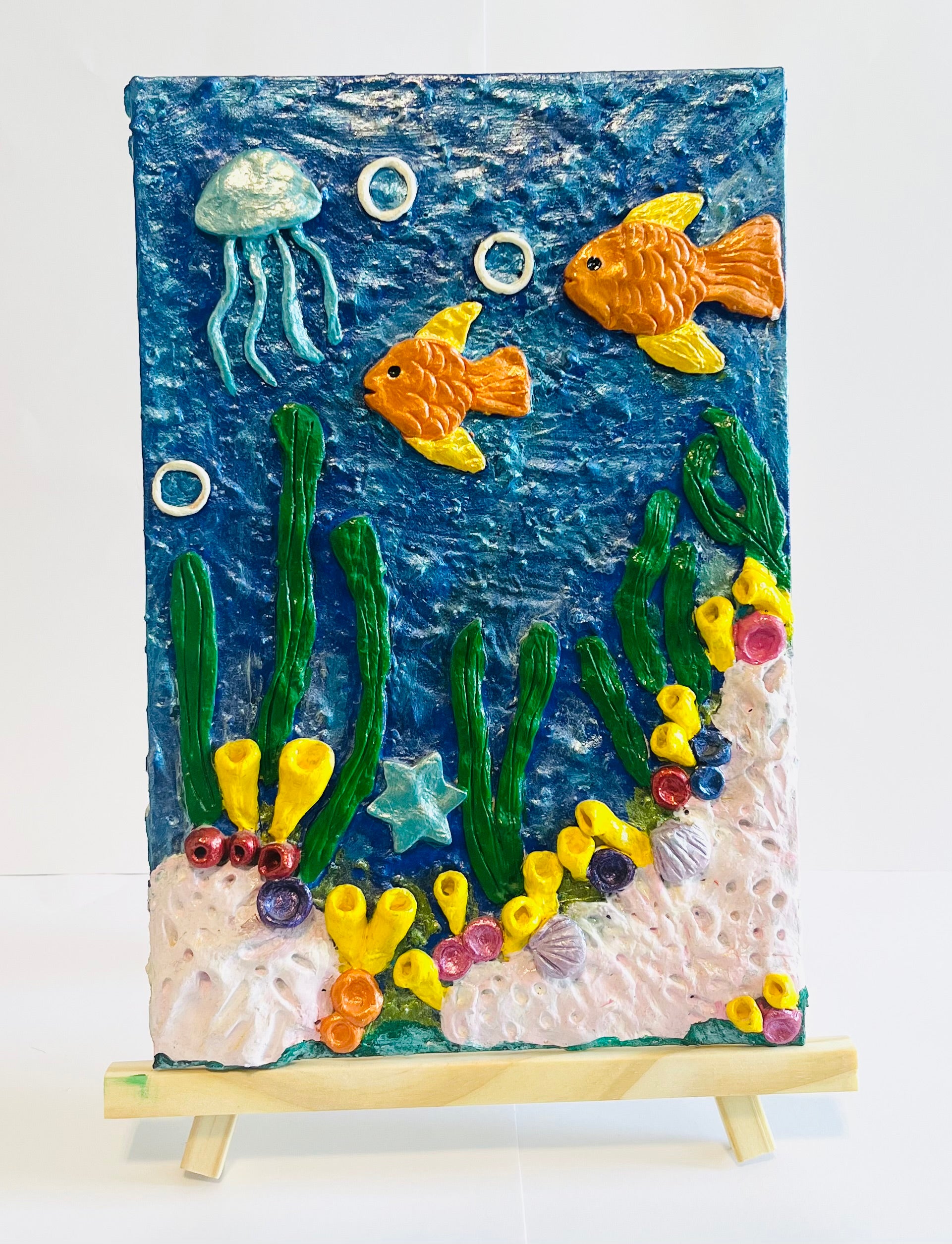 Under sea life/ aqua painting with clay fish and sea shells painting with vibrant colours.