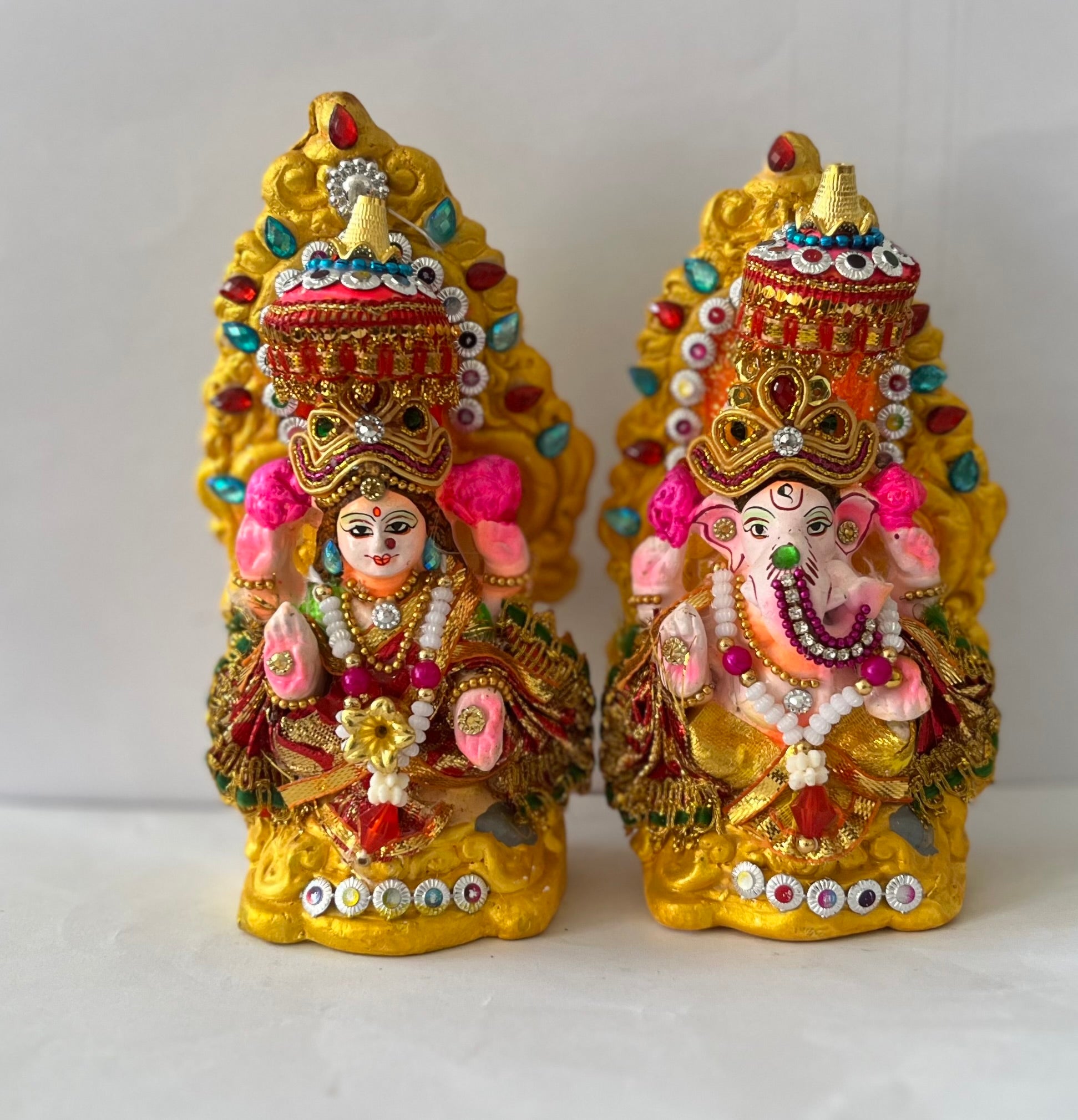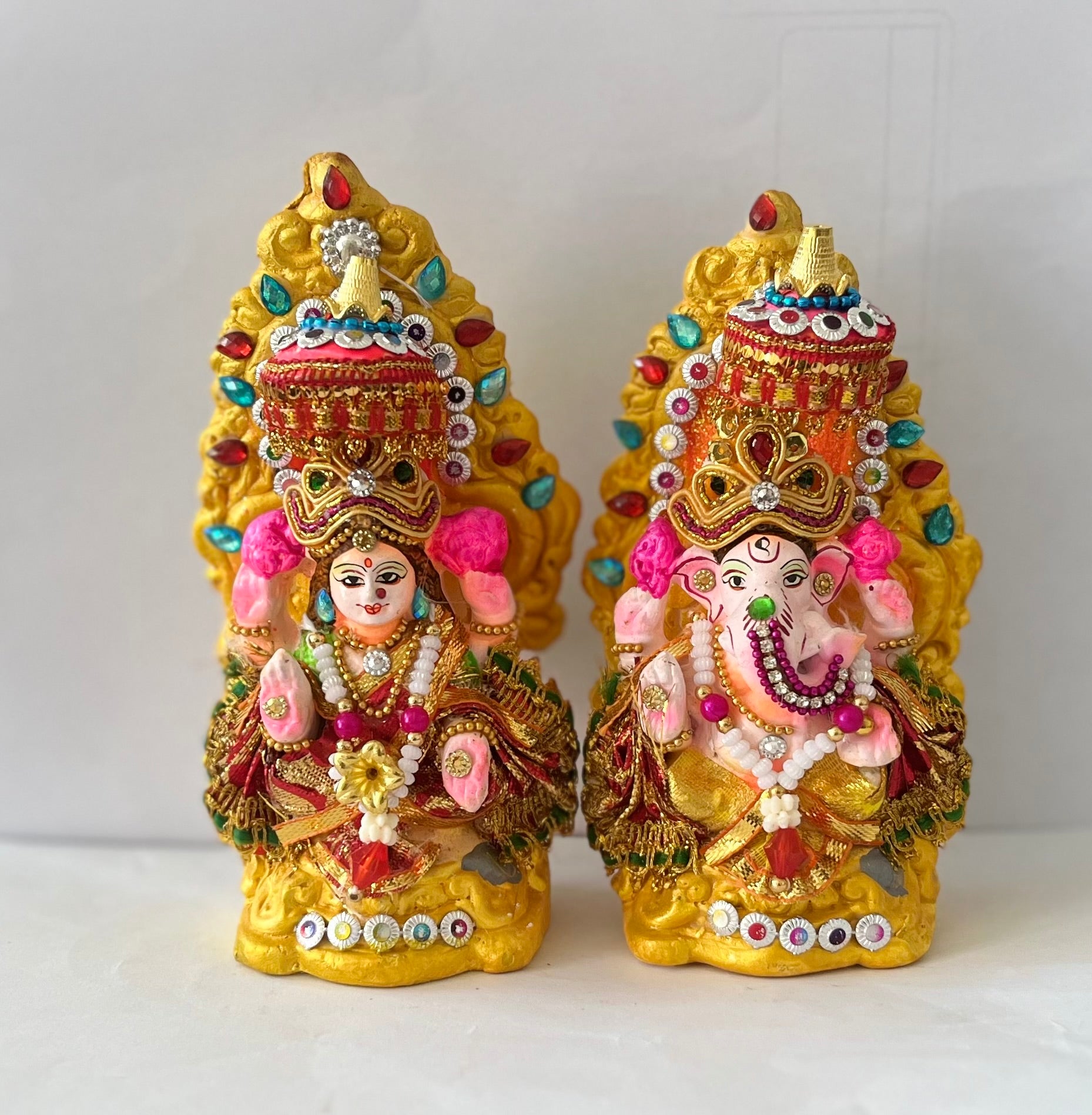 Lord Laxmi Ganesh 14 cm Murti Mitti Terracotta Clay idol with attached vastra, mala and jewellery