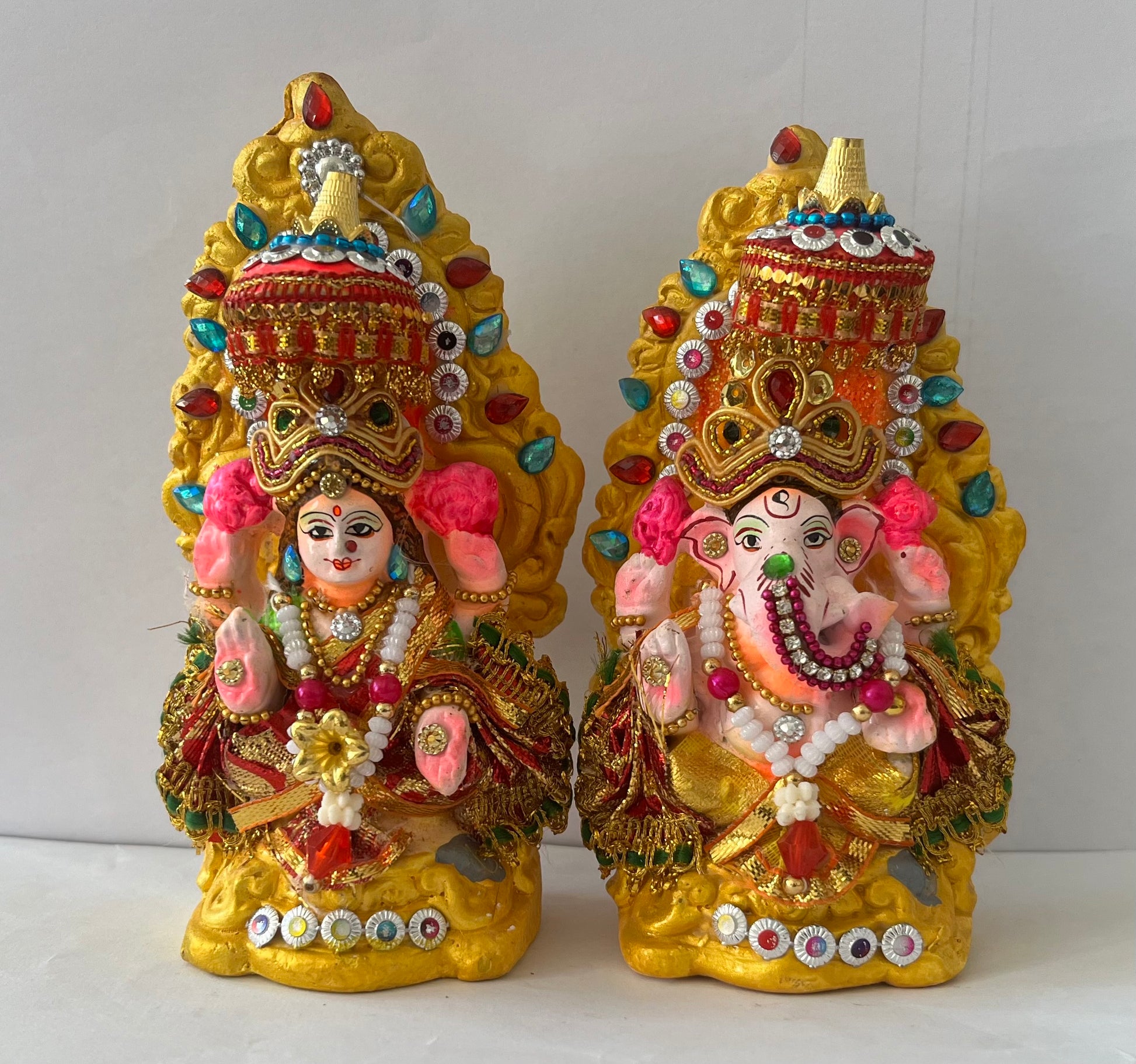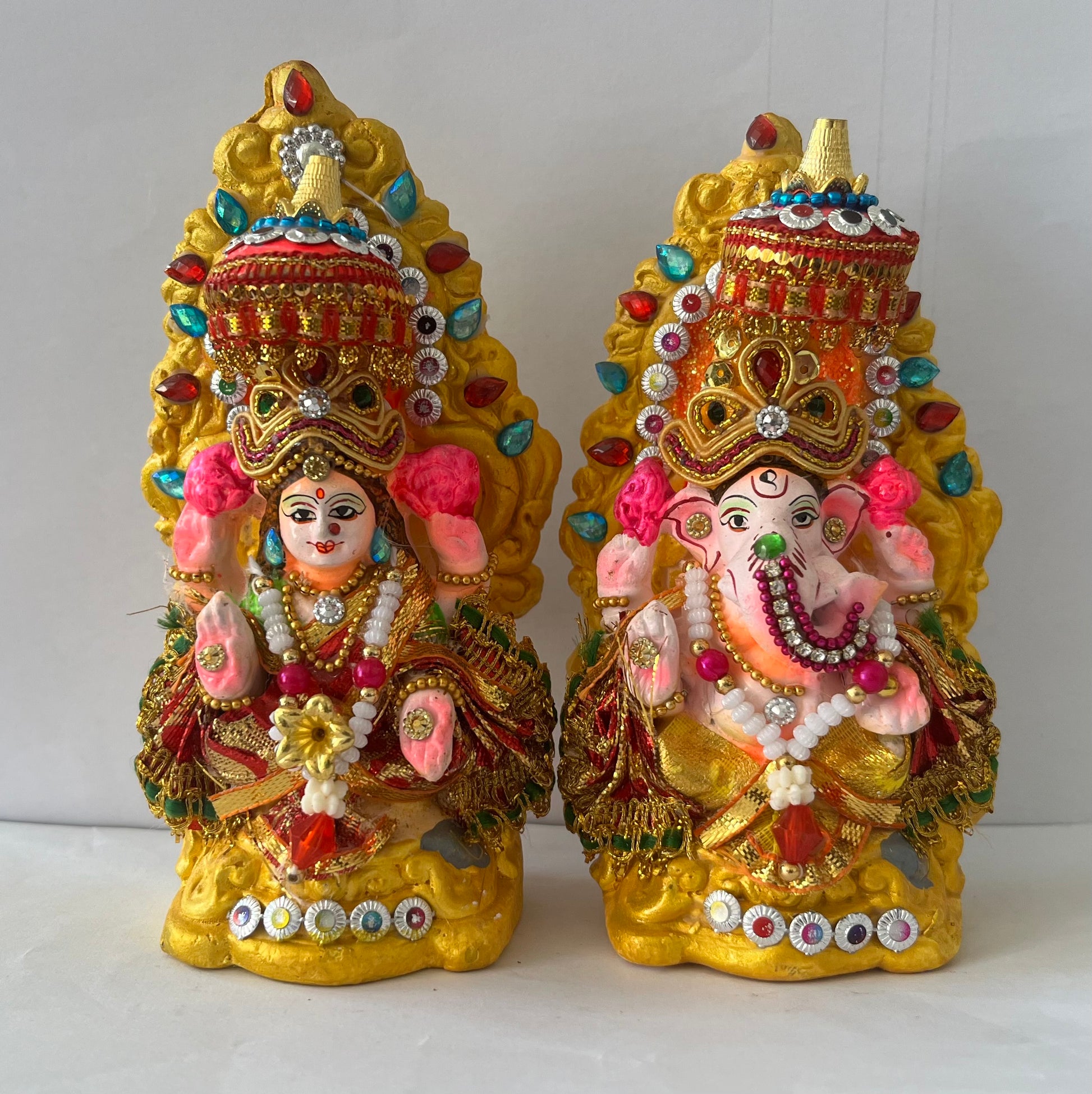 Lord Laxmi Ganesh Pair Murti Multicolour Moti (14cm)