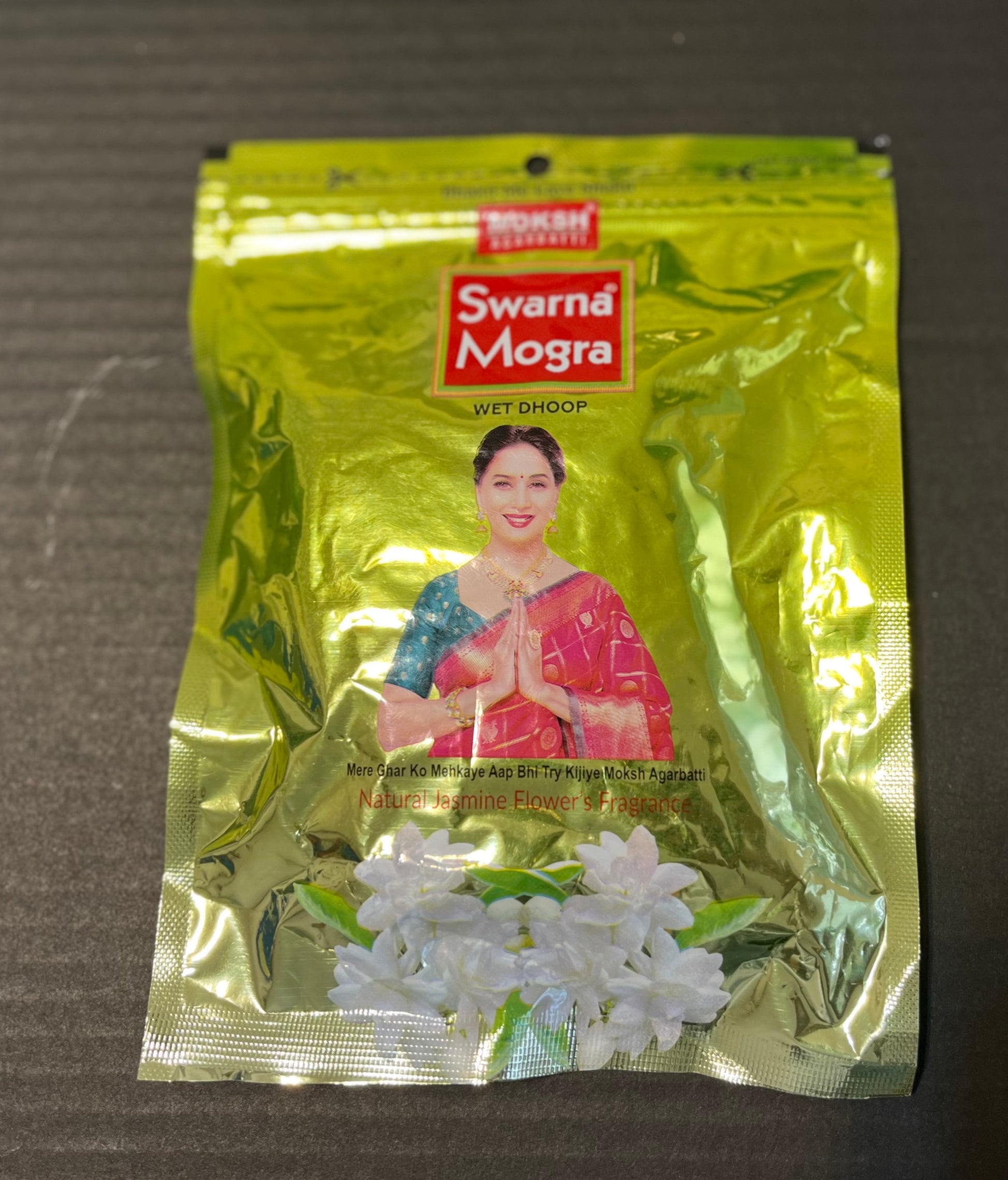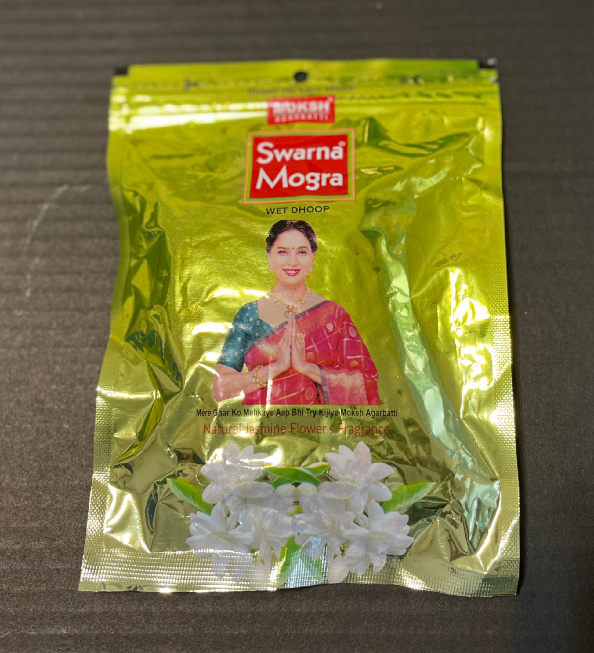 Swarna Mogra Dhoop Batti is an aromatic biotic material that releases Mogra fragrance. The term is used for either the material or the aroma. It is used for aesthetic reasons, aromatherapy, meditation, and ceremony.