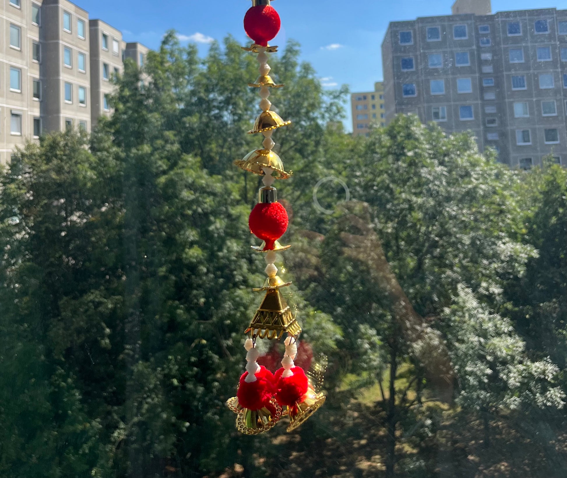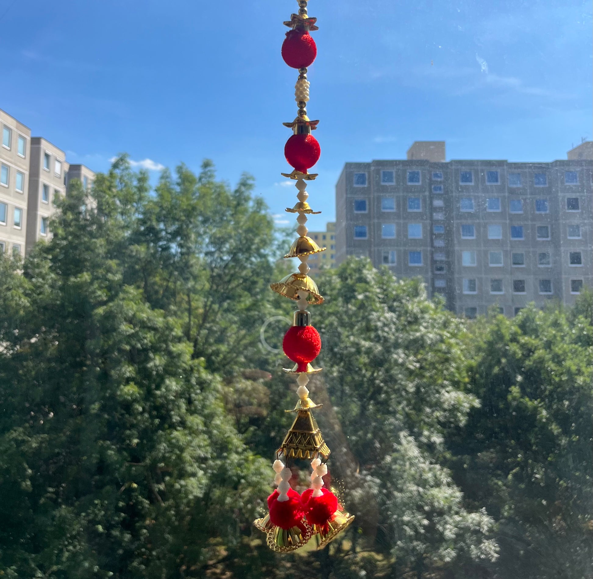 Maroon Golden Pompom with Beads Traditional Wall String (110cm) (1 pc)