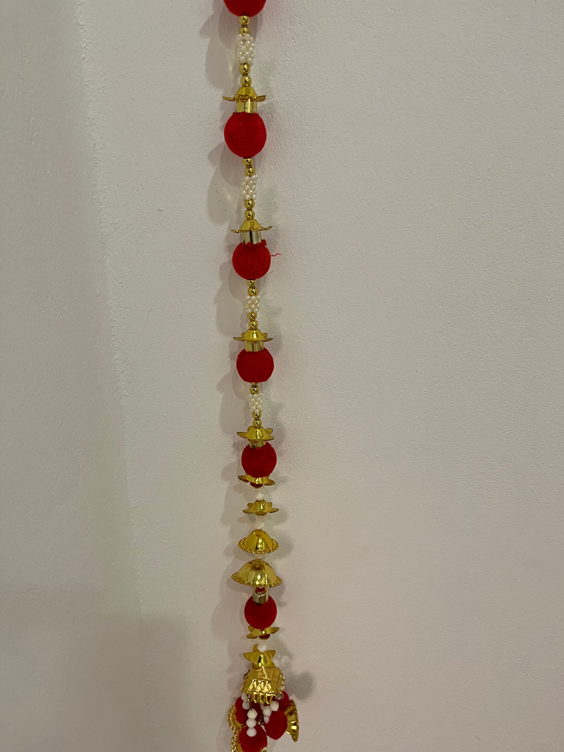 Maroon Golden Pompom with Beads Traditional Wall String(1 pc)