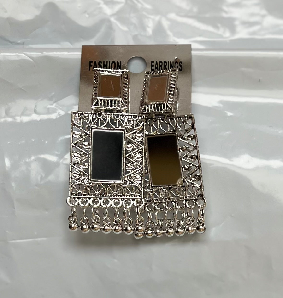 Oxidised Silver Stylish Mirror Earrings Chandbali Earring