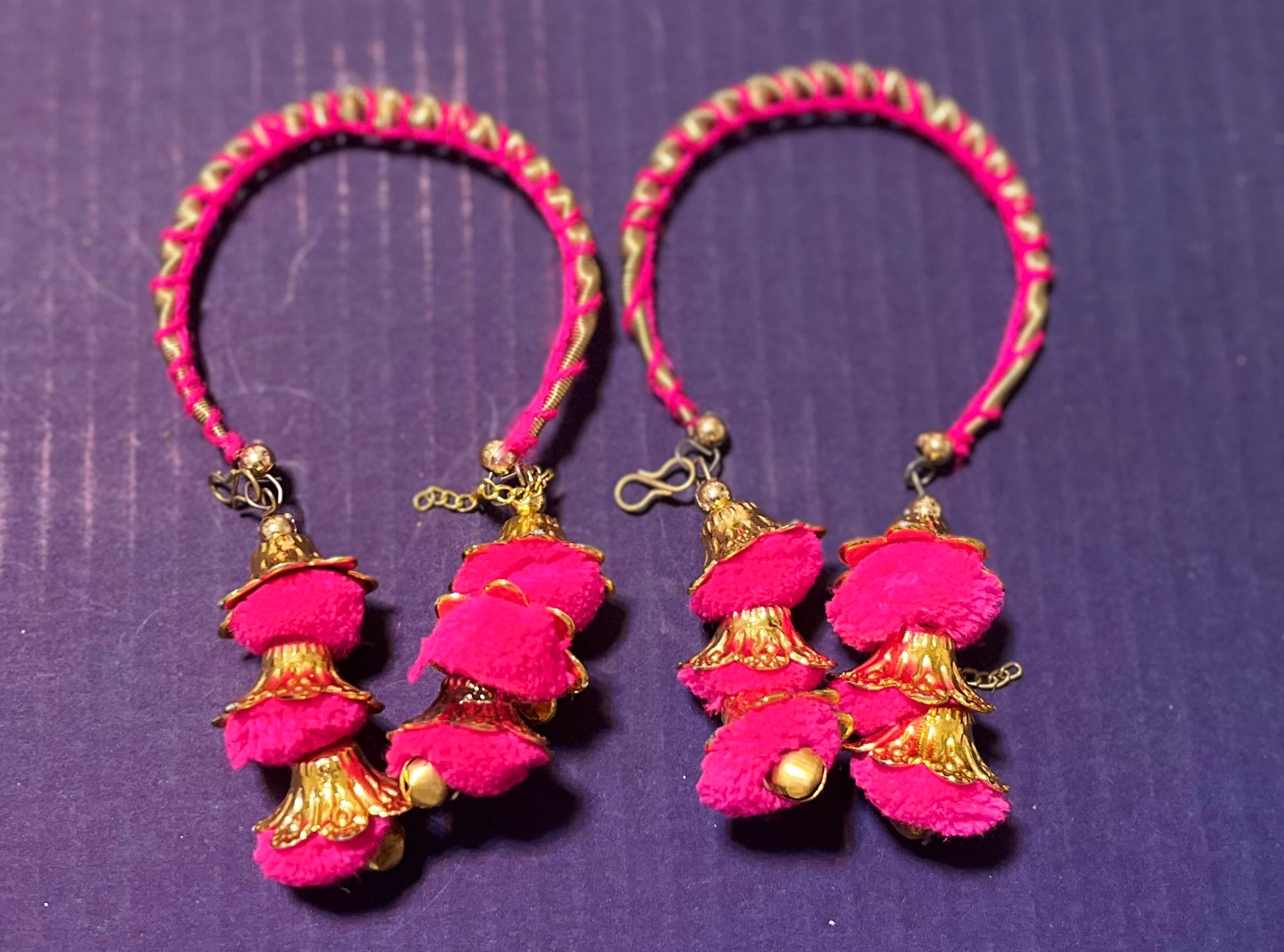 Pink Bracelets Bangle Kada Pompom Design for karwa chauth