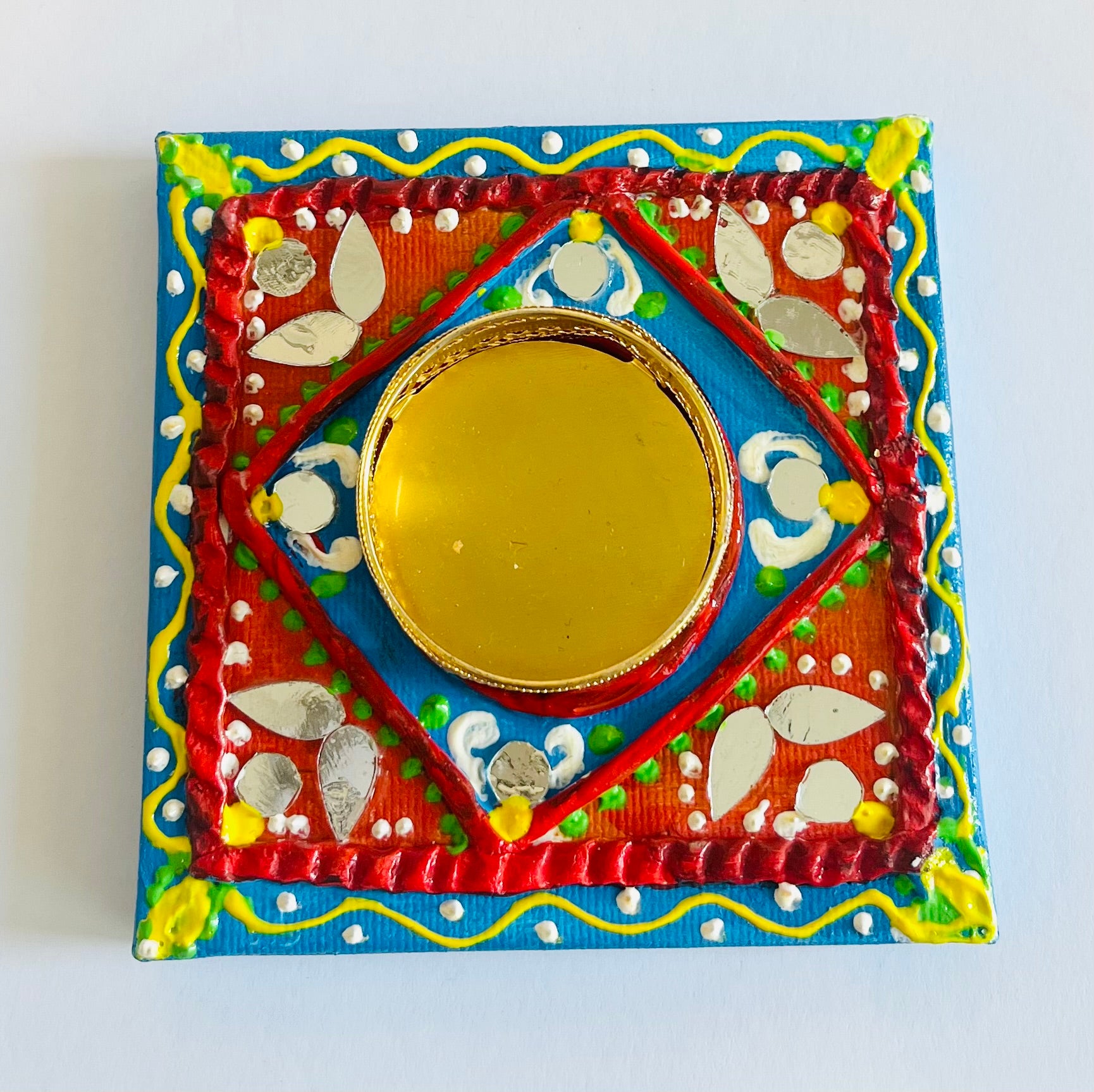 Tato položka je navržena s rádžasthánským malováním a lze ji použít pro puja asan nebo puja chowki