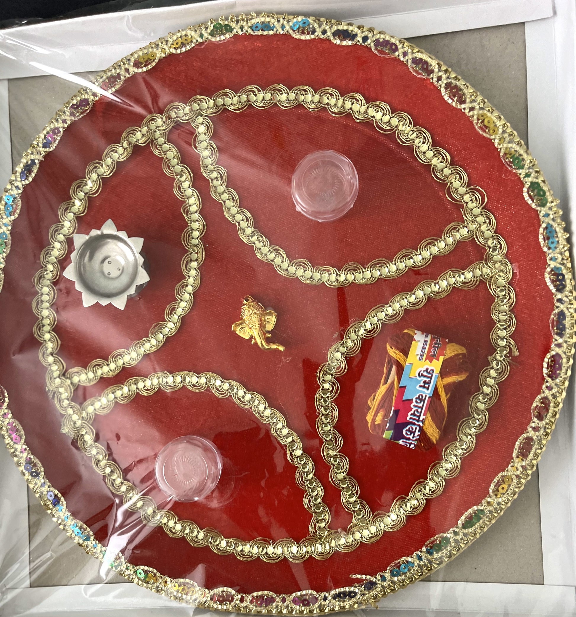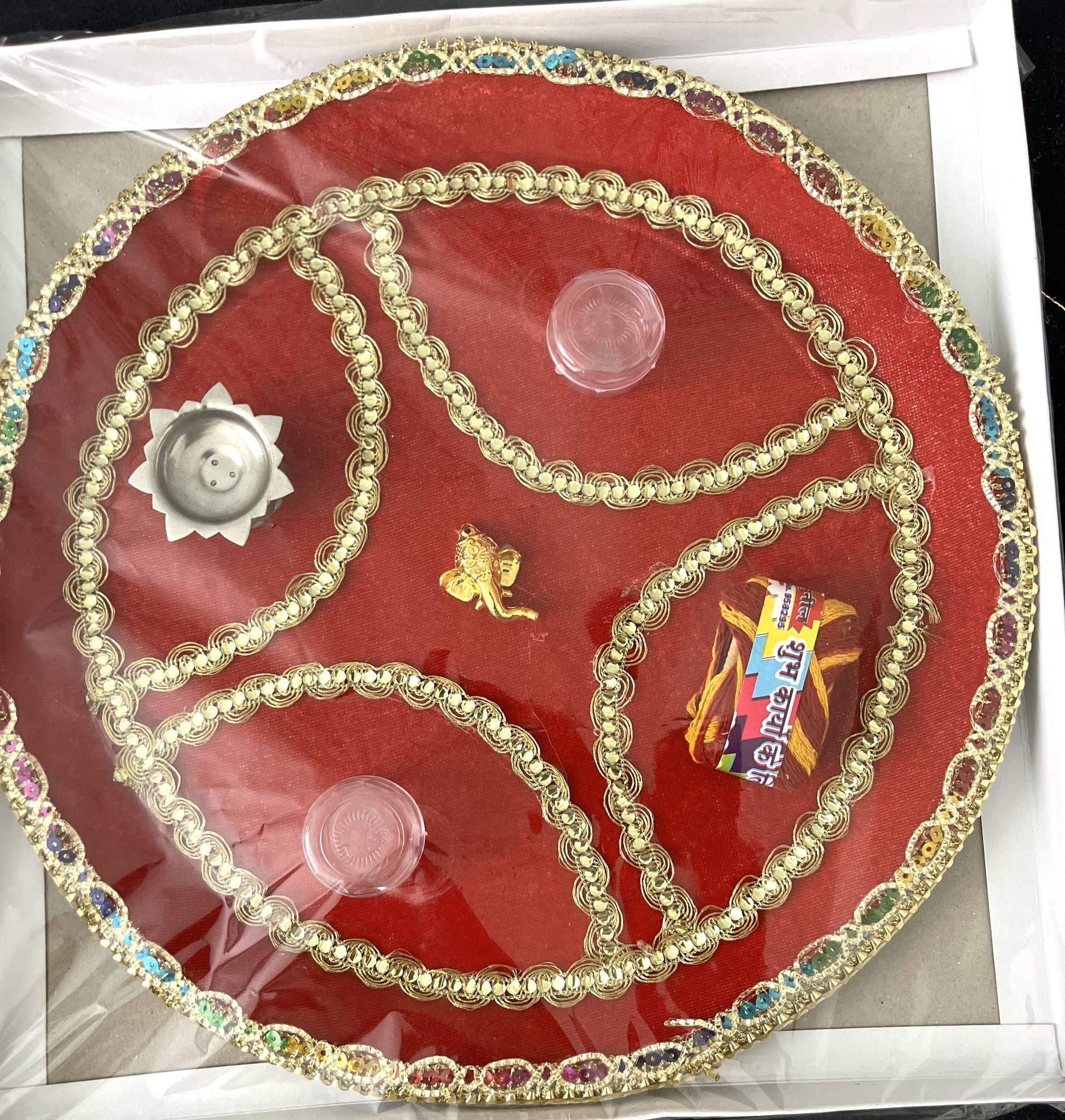 Red Golden Gotta Patti Ganesha Puja Thali (30cm)
