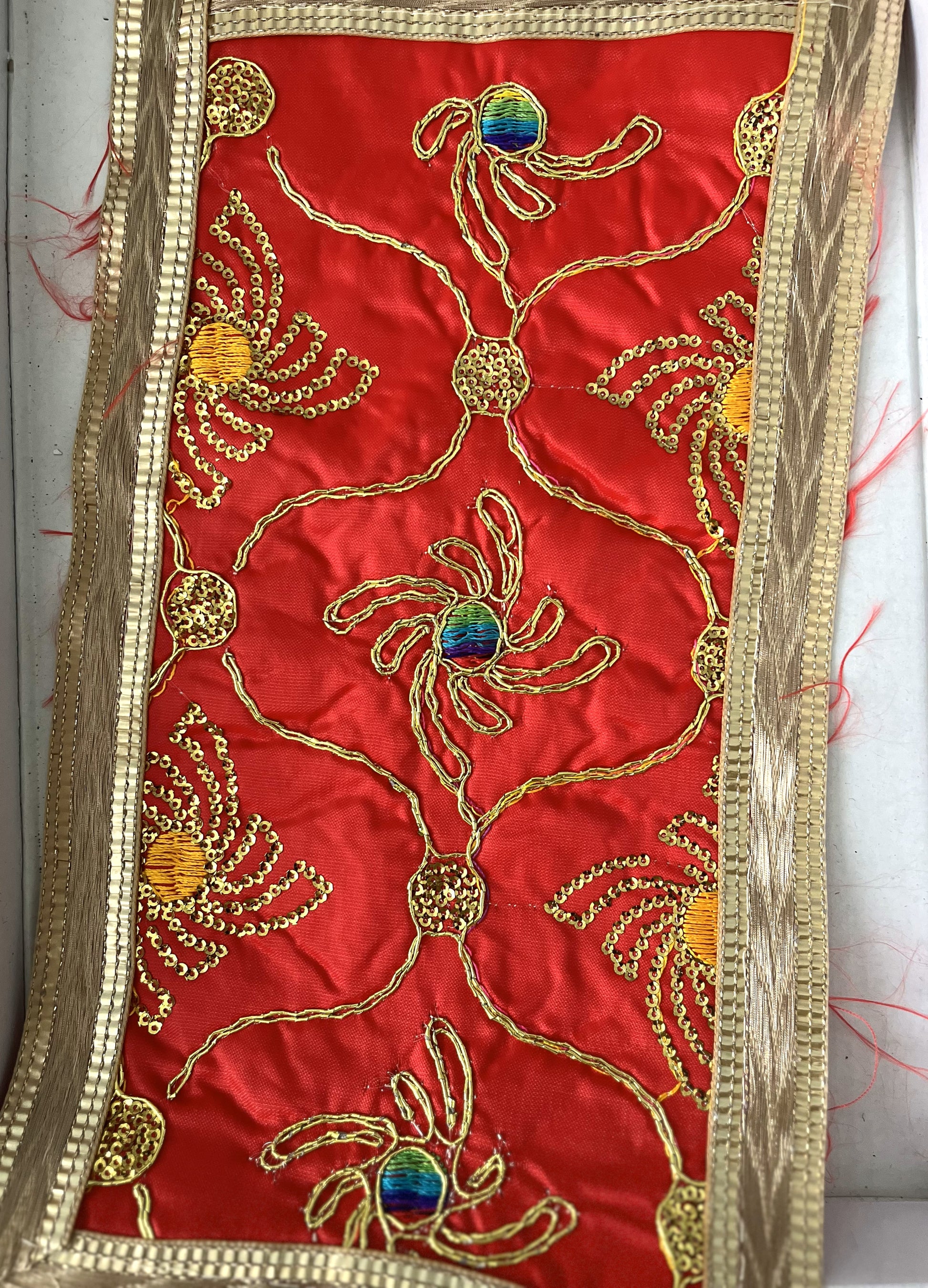 Red Golden Zari Embroidery Aasan (32x16cm)