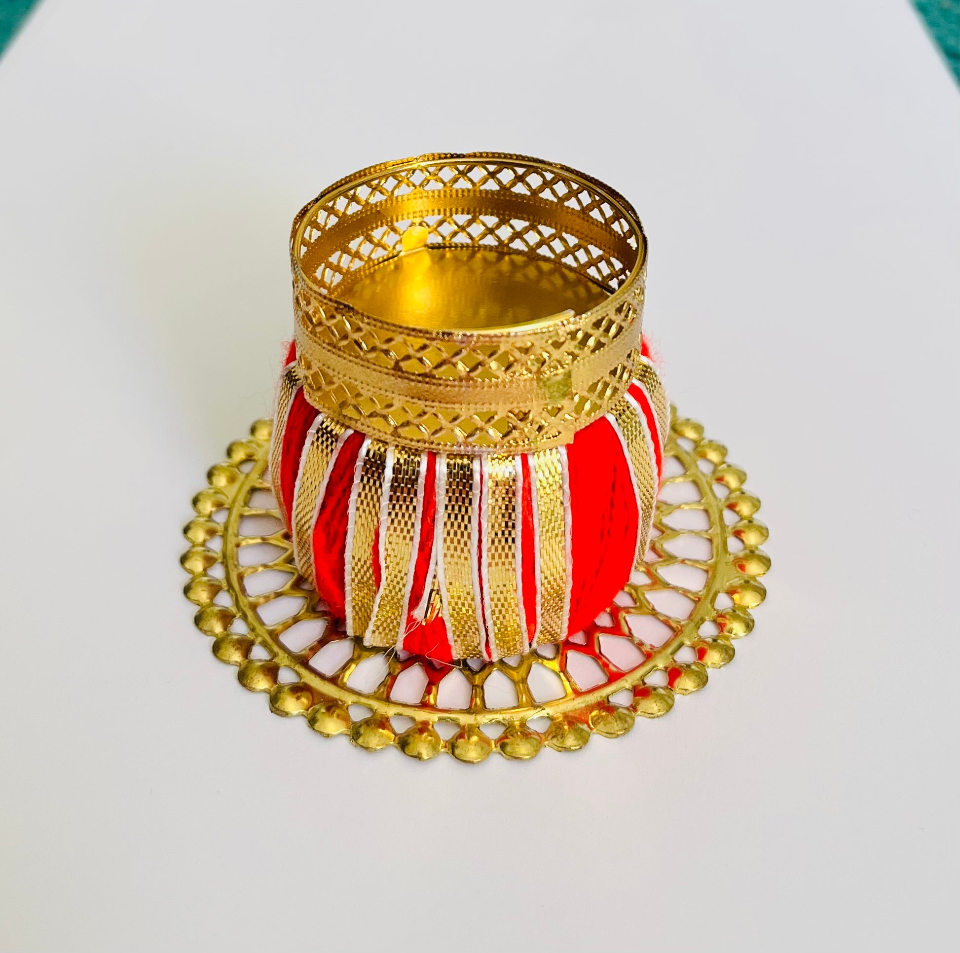 Rajasthani designer red plate tea light holder for diwali.