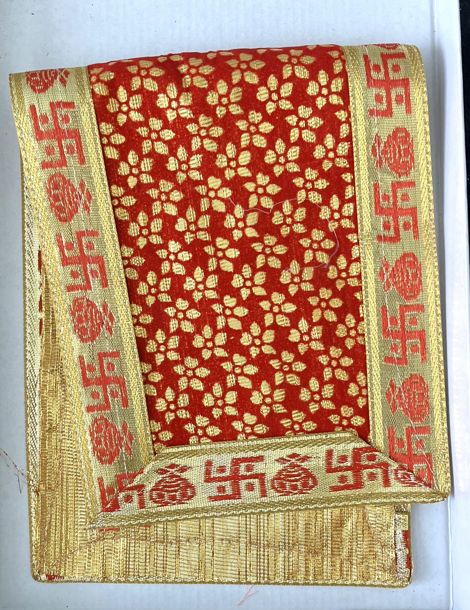 Red Velvet Swastik Golden Zari Border Aasan (48x20cm)