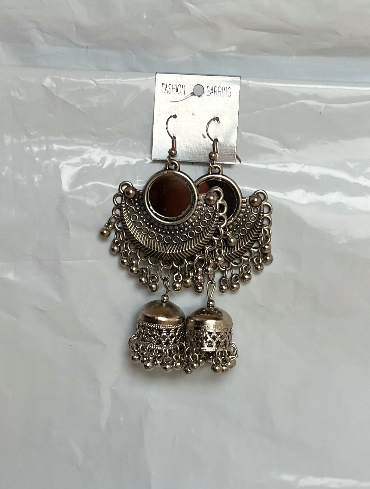 Shining Jewel 925 Oxidised Silver Stylish Afghani Mirror Chandbali Earrings Alloy Chandbali Earring