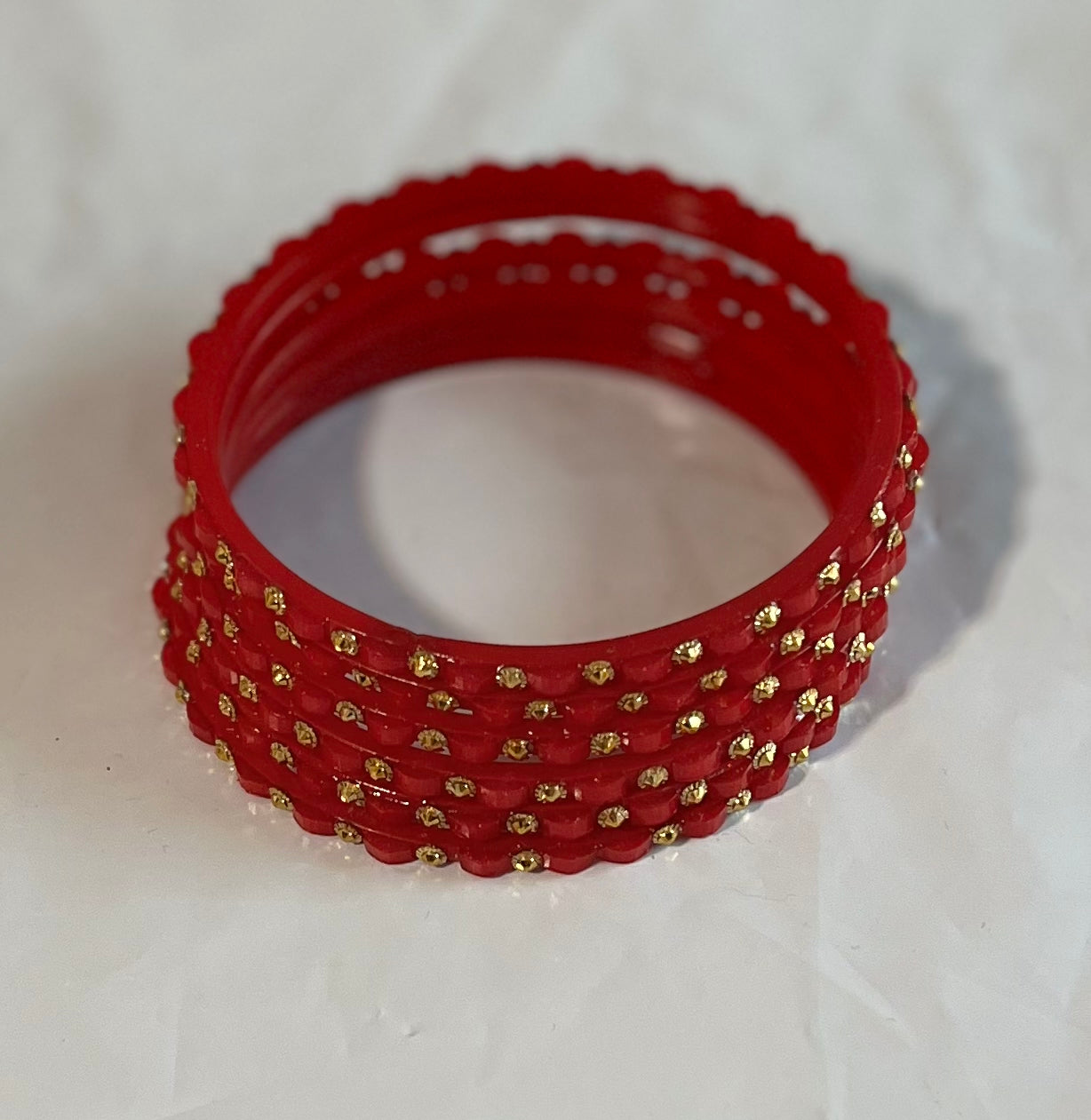 Beautiful shining red bangles with golden sequin embellished to give a beautiful look in your hand.