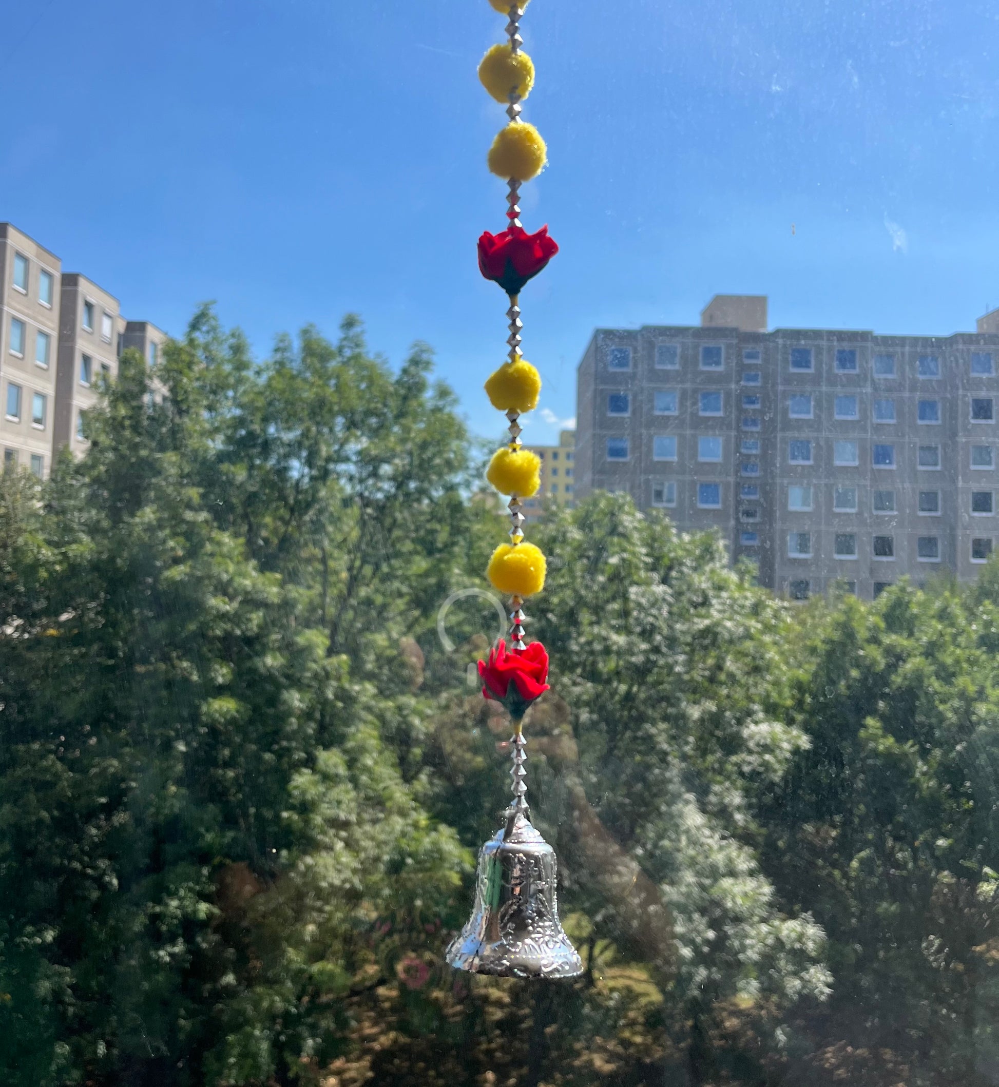 Wall Door Pompom String Rose Toran Silver Bell (135cm) (1pc)