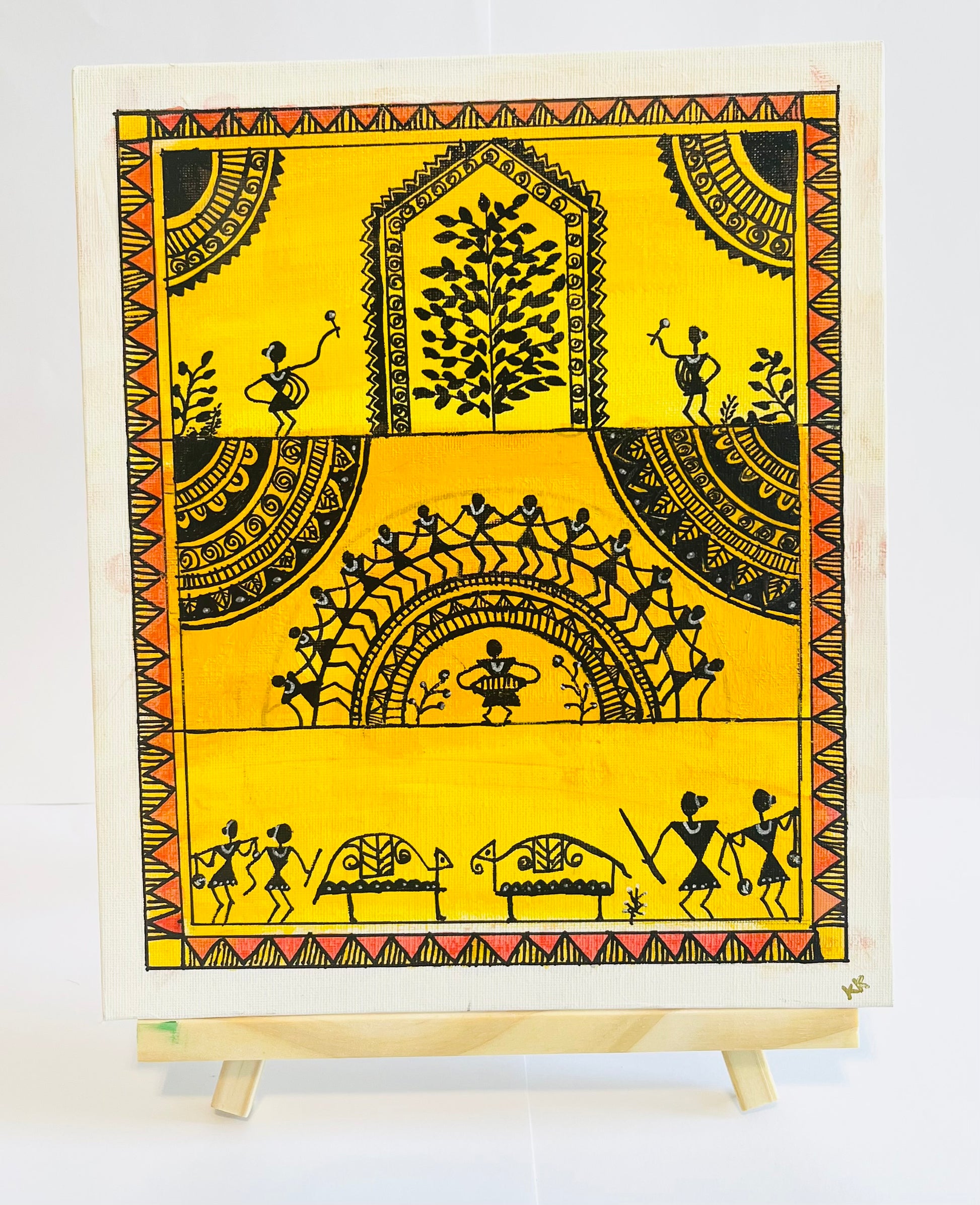 Vibrant colourful warli painting give elegant look to your living room/study room.