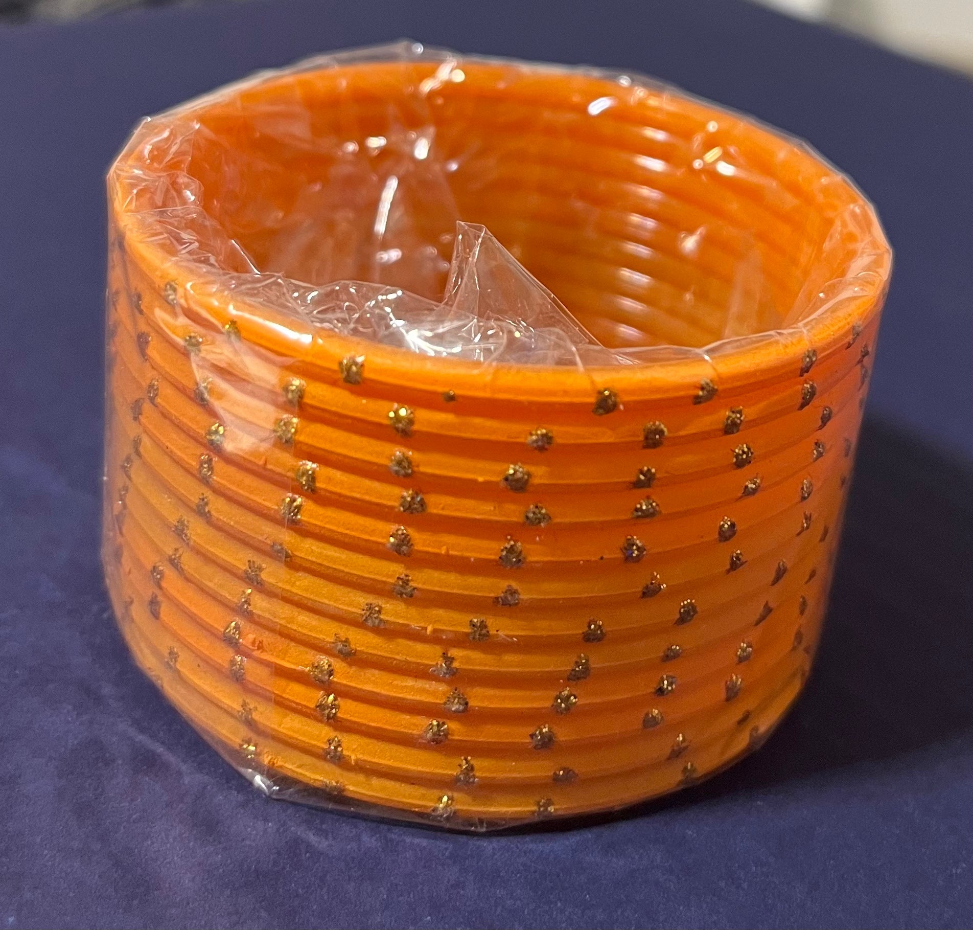 Beautiful shining Yellow plastic bangles with golden moti beaded to give a beautiful look to your hand.