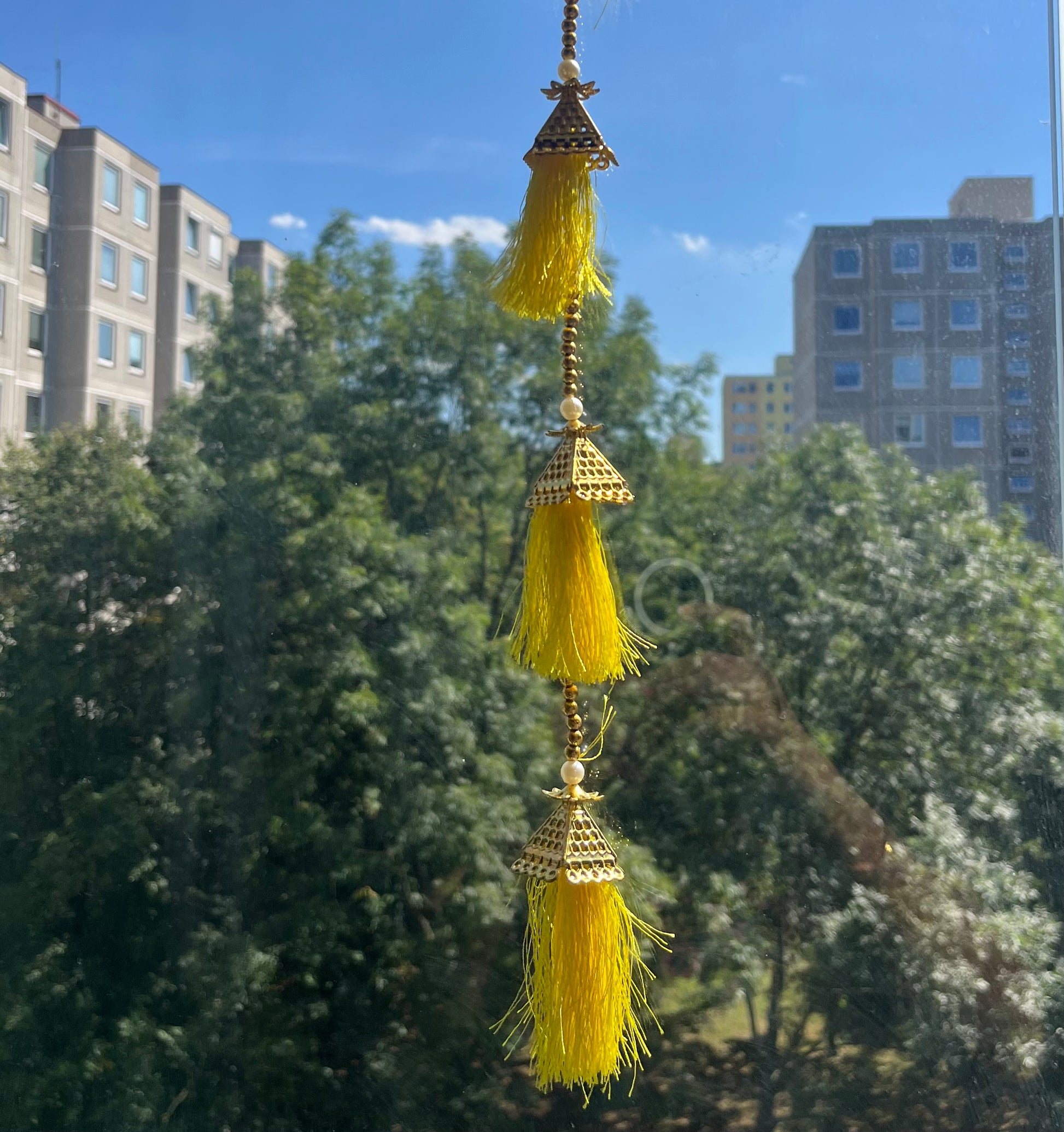 New design yellow silk threads,beads Traditional Wall String(1 pc)