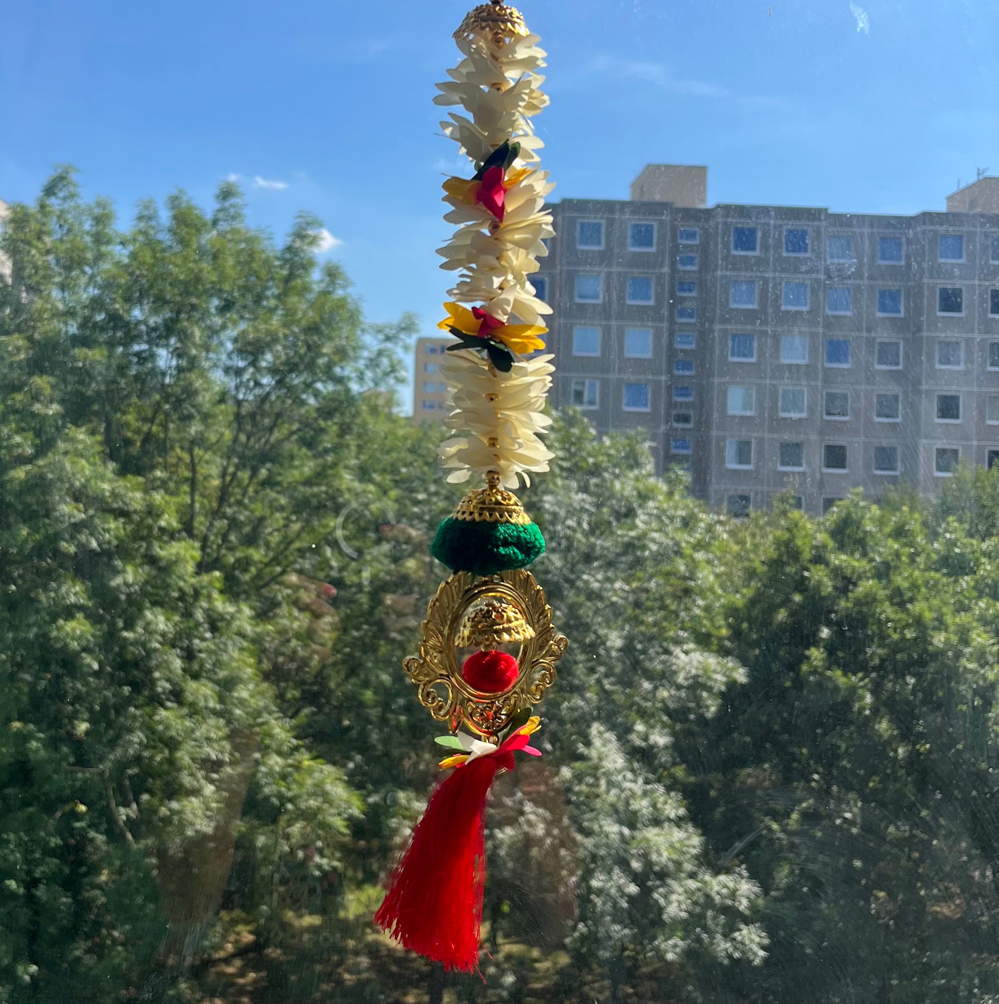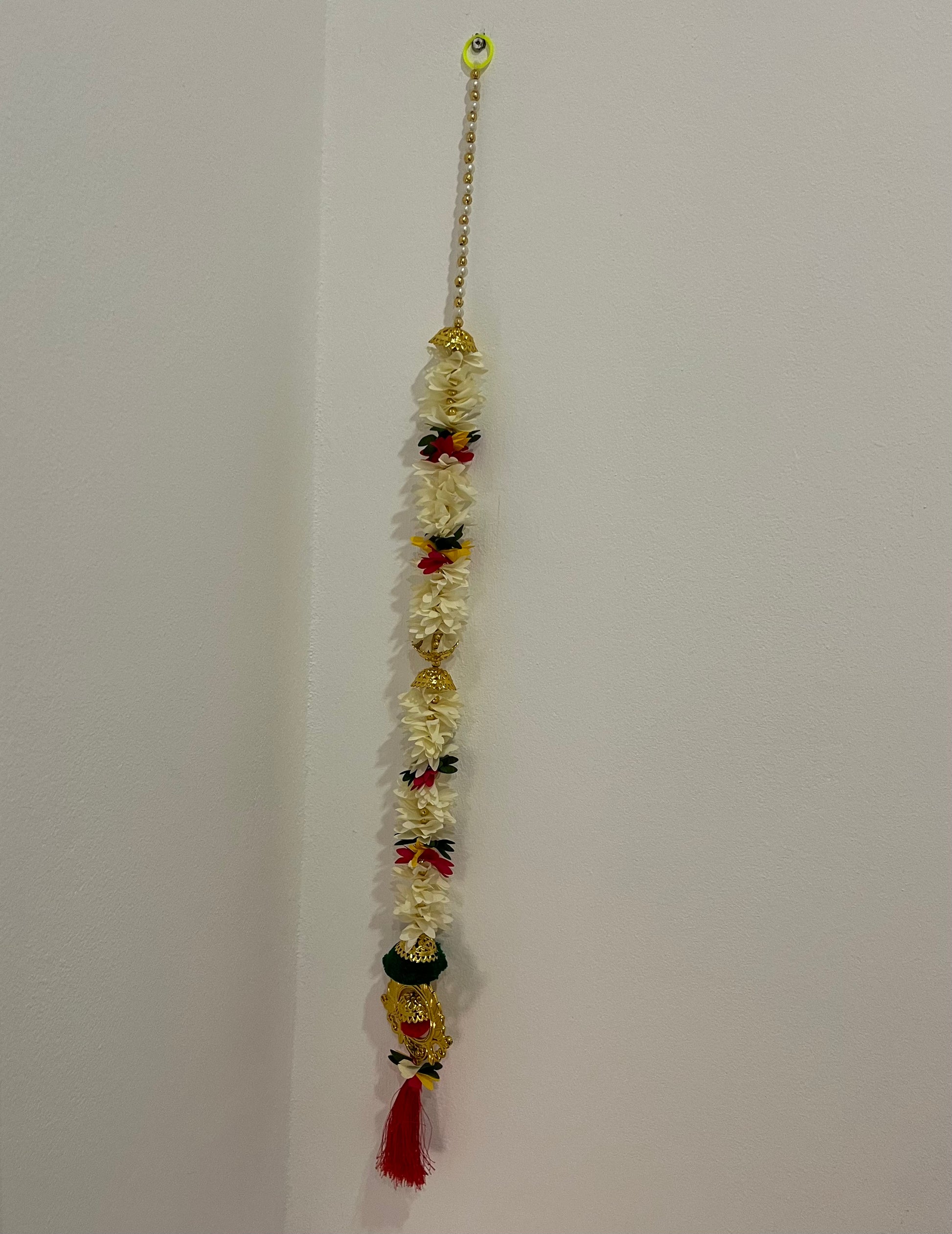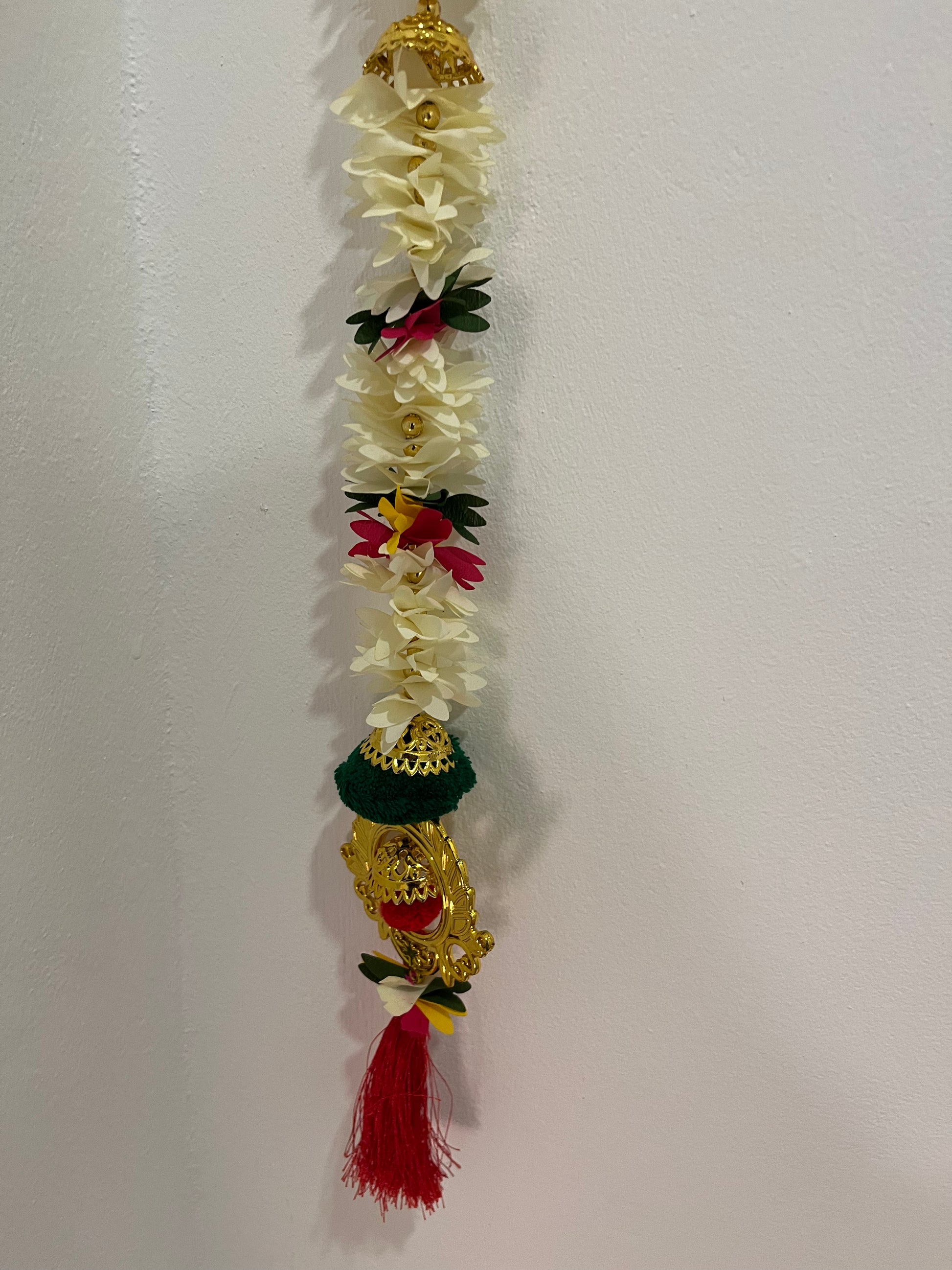 Artificial White Flower with Orange and Golden Beads String Toran (85cm) (1 pc)