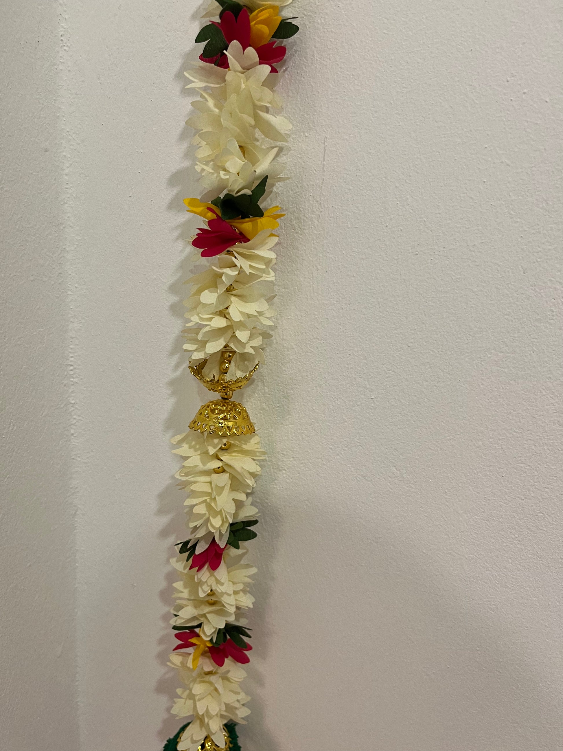 Wall White flower with yellow, orange, green flower and Golden beads String Toran (1pc)
