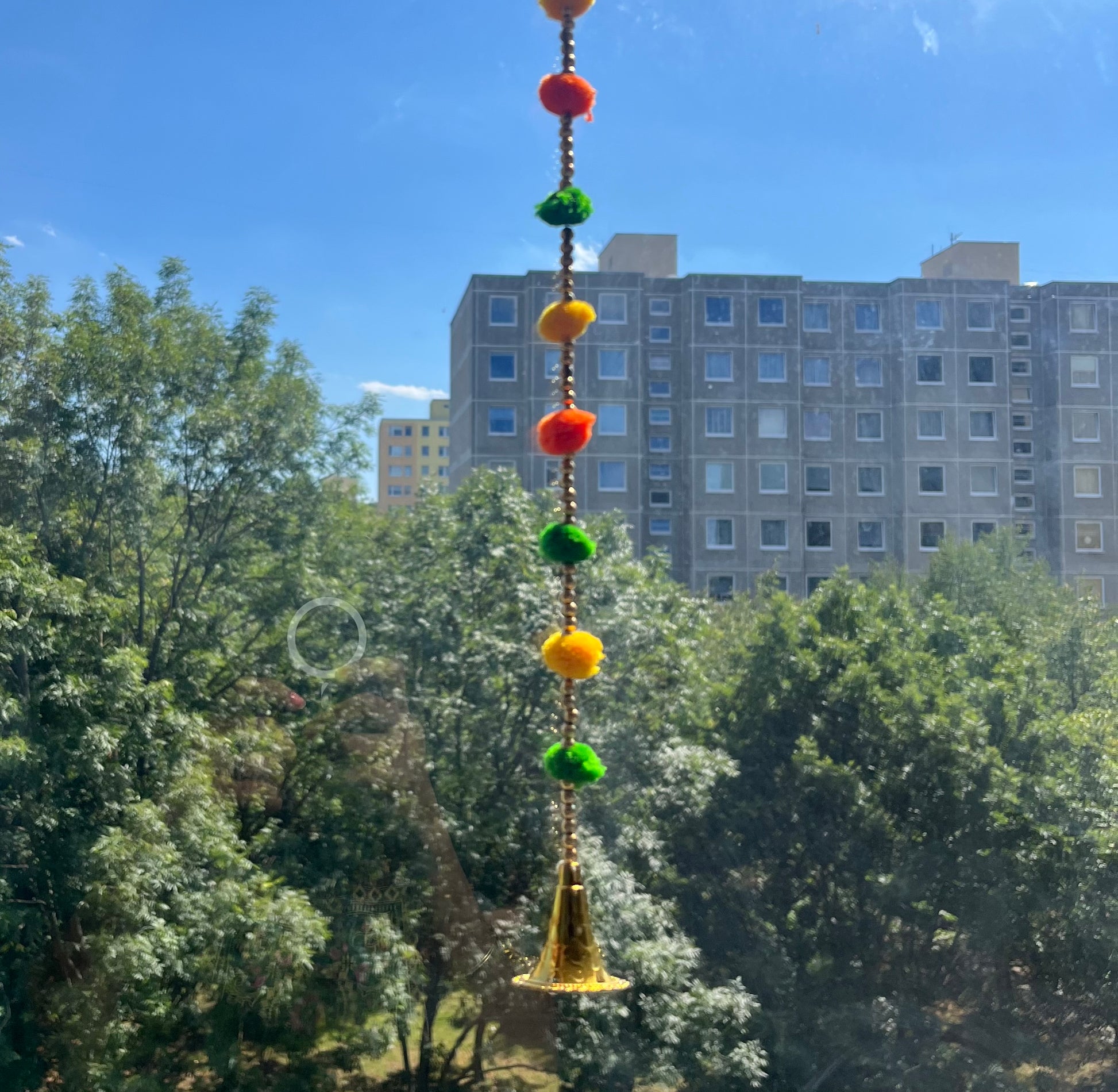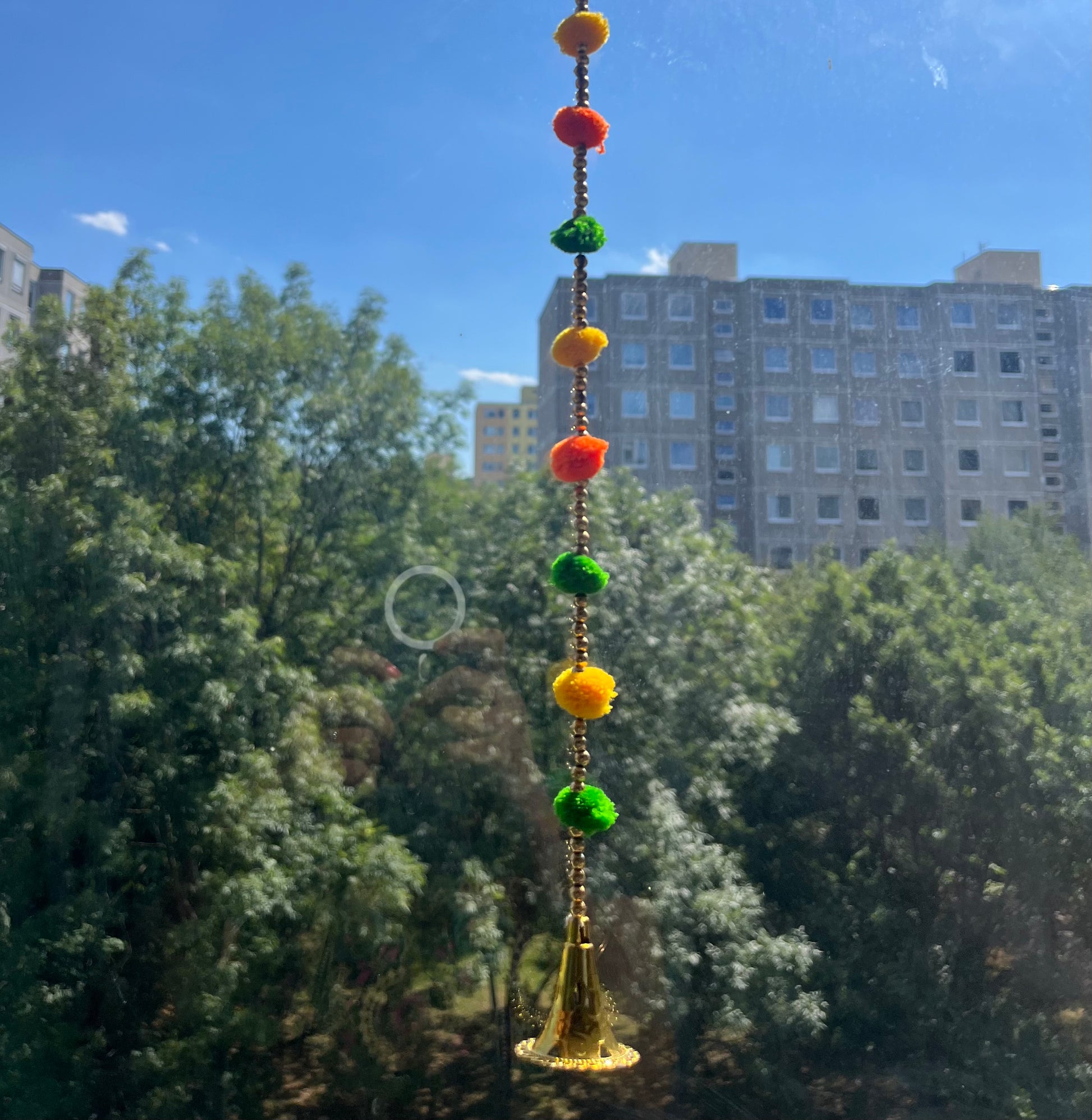 Pom Pom String with Golden Beads Toran (100cm) (1pc)