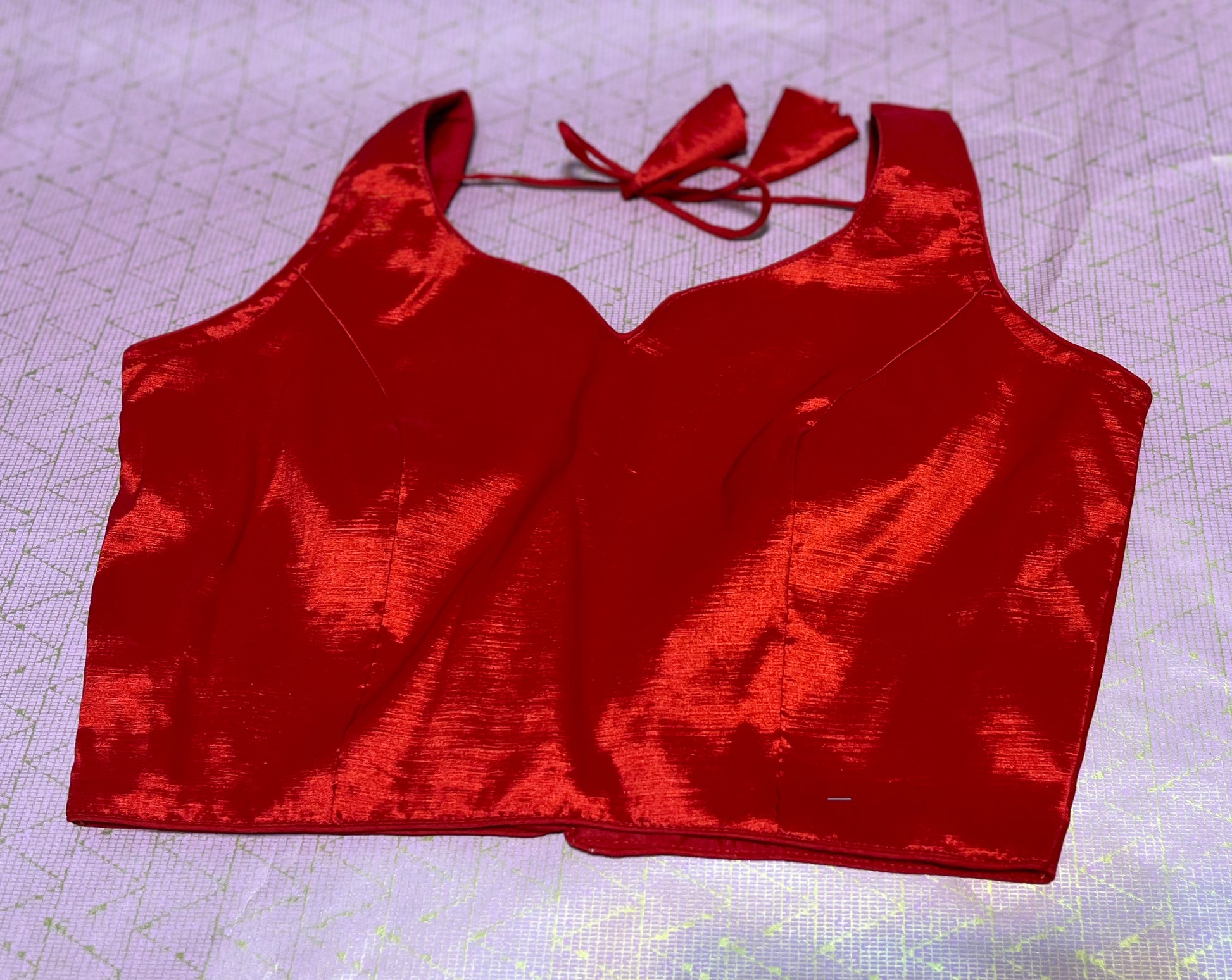 Silk Saree Readymade Blouse Red Colour Plain Sleeveless Size 38 without Padded