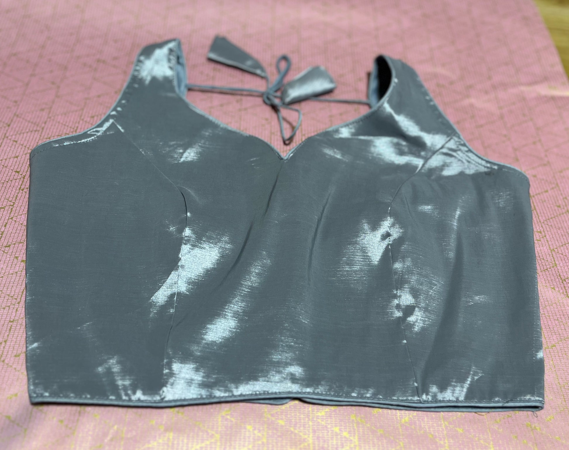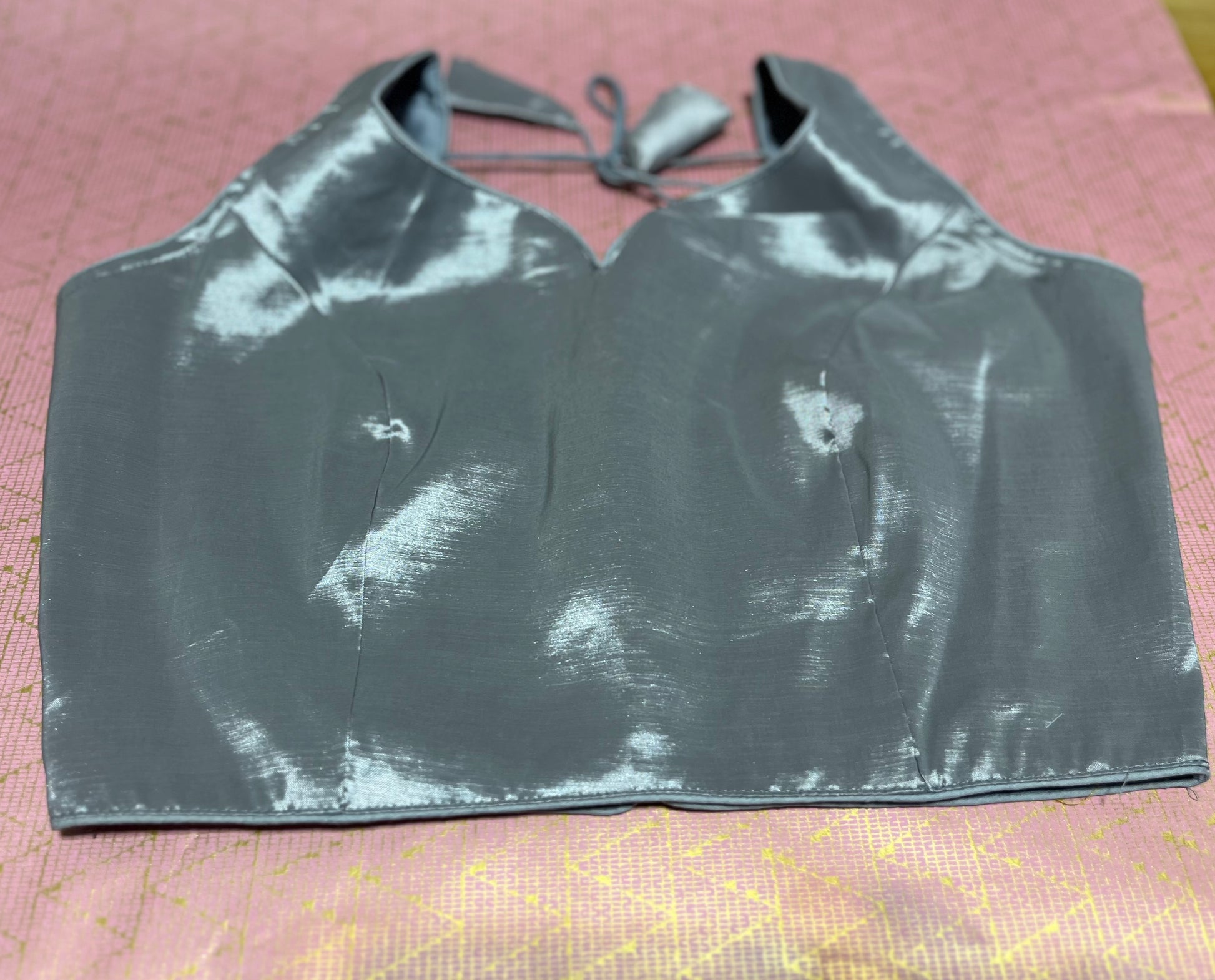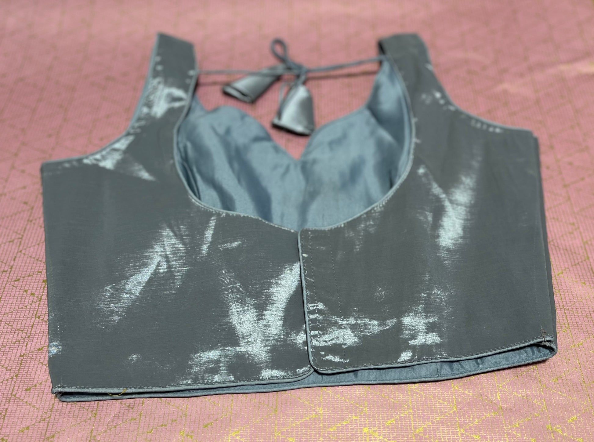Silk Saree Readymade Blouse Silver Colour Sleeveless Size 38 without Padded