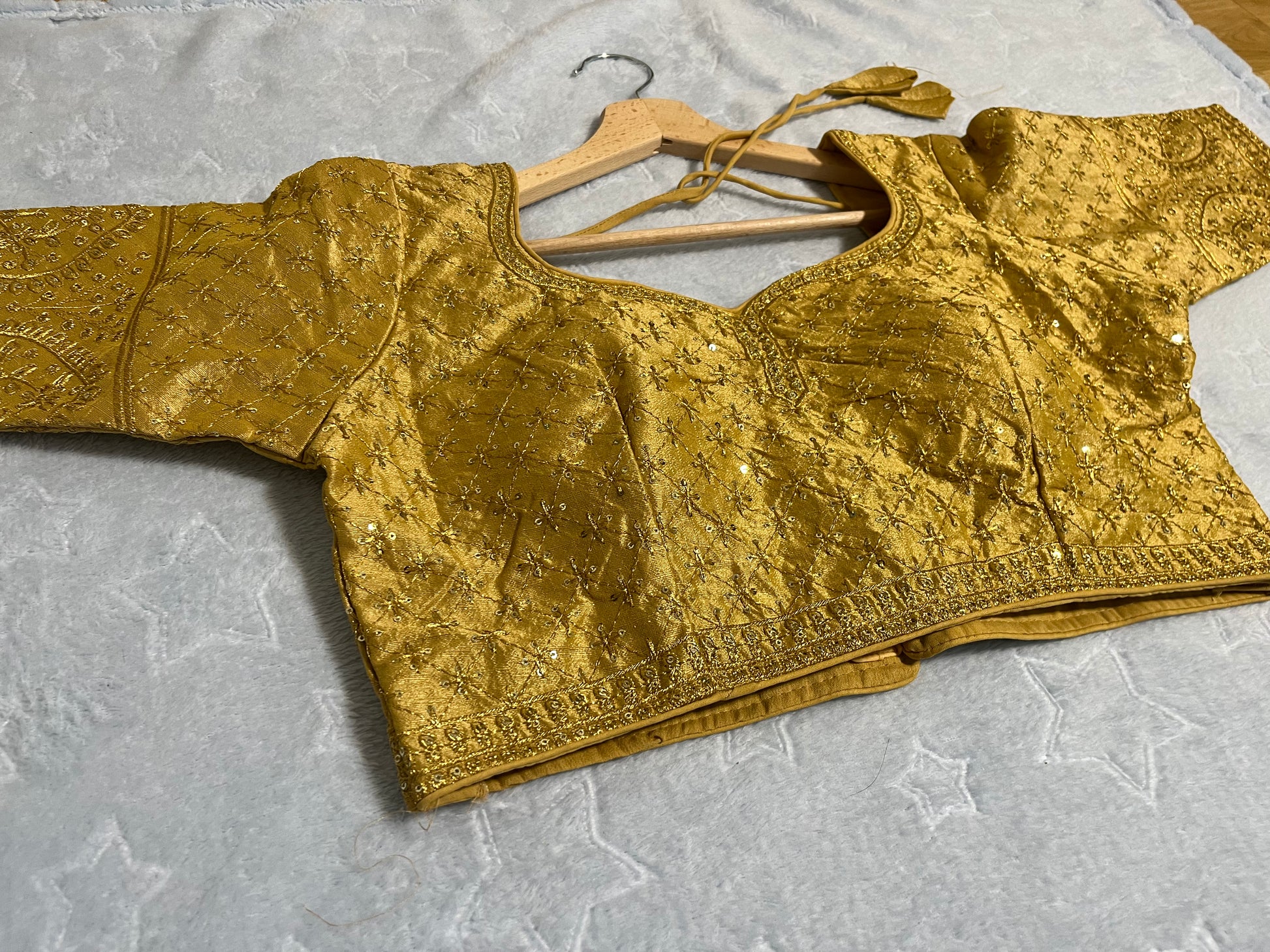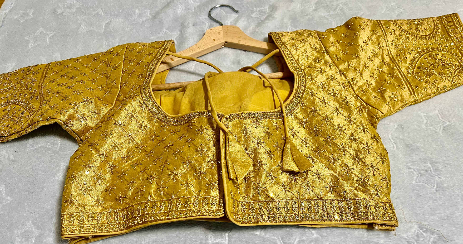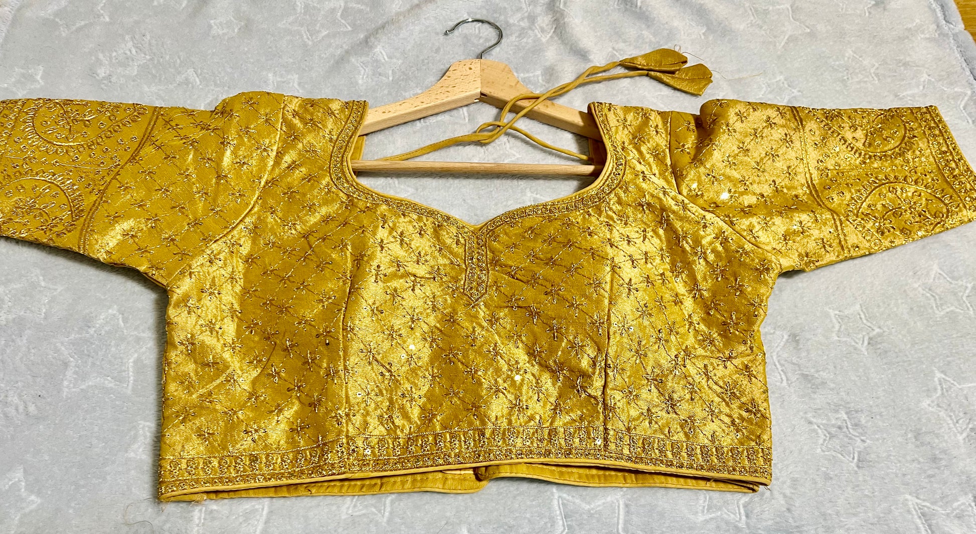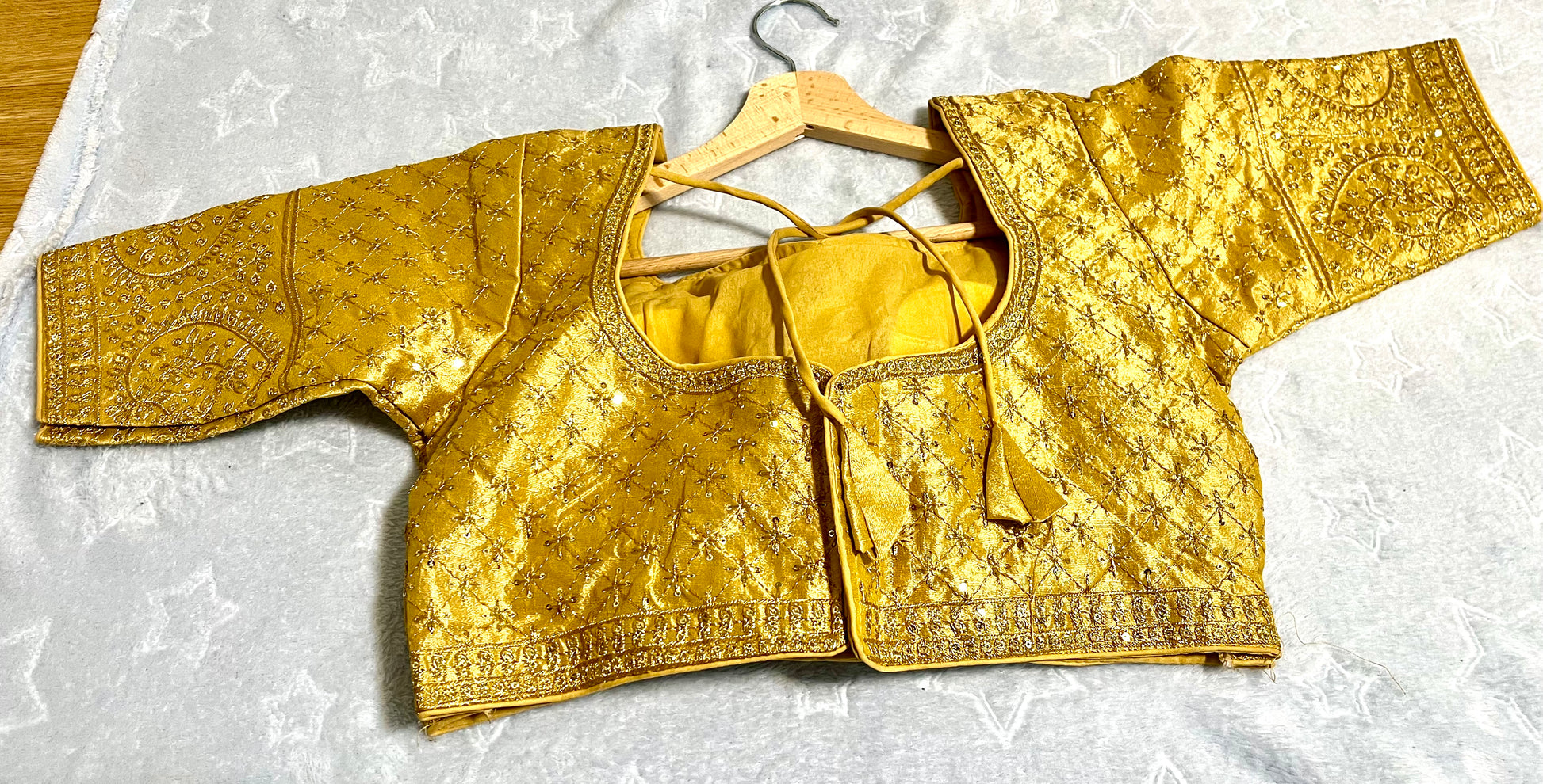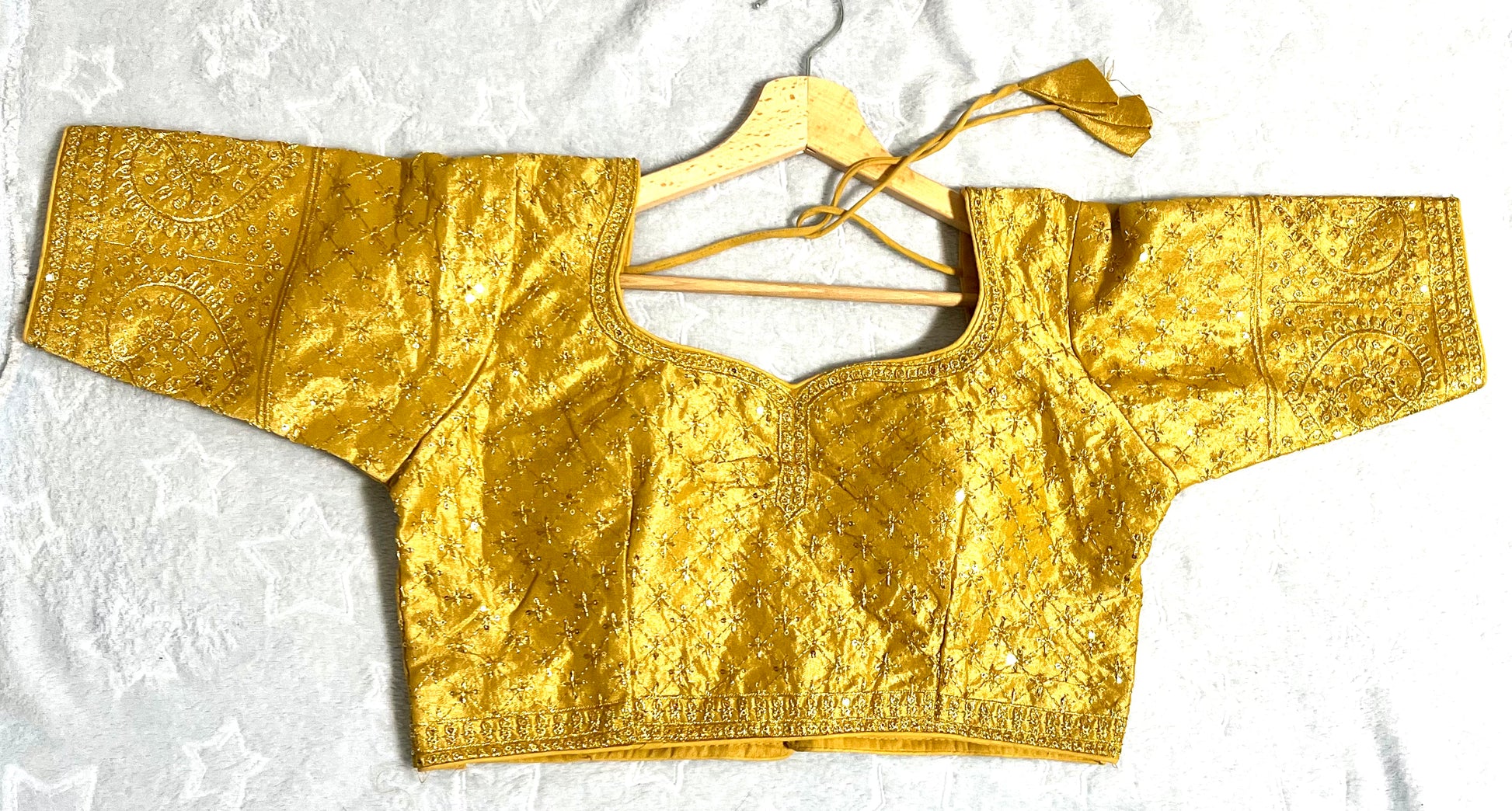 Women's Zari Sequin Heavy Design Golden Blouse (Size 38) with Padded